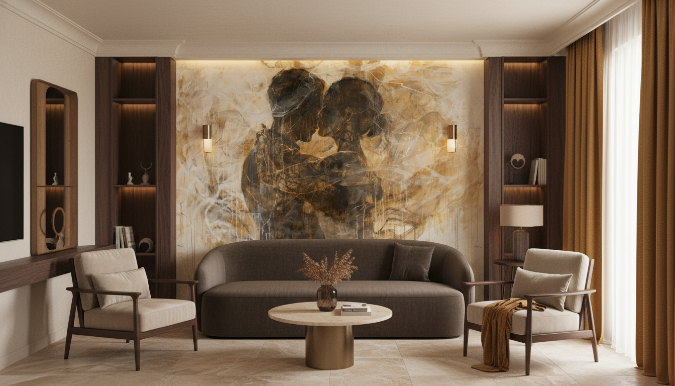 Laissez-vous porter par cette symphonie visuelle où l’amour se murmure en nuances dorées, transformant vos murs en témoins silencieux d’une beauté qui transcende le temps et touche l’âme en son essence la plus pure.
