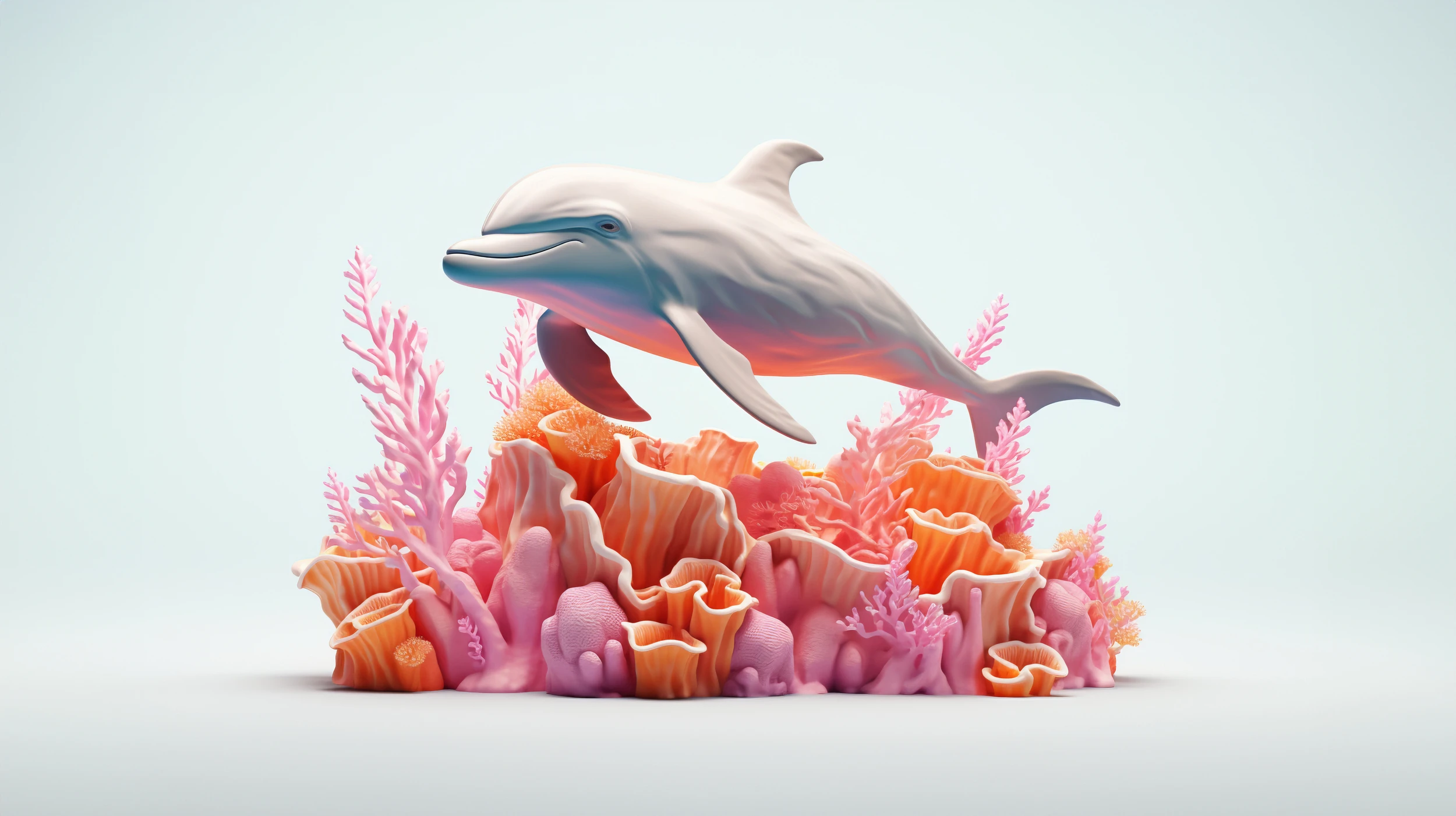 Ce papier peint océanique révèle un univers sous-marin d’une beauté saisissante, orchestré autour d’un dauphin aux courbes élégantes qui semble danser au-dessus d’un récif corallien luxuriant. L’illustration, réalisée dans un style contemporain 3D aux finitions satinées, capture la fluidité du mouvement aquatique avec un réalisme touchant. Les coraux sculptés déploient leurs formes organiques dans une symphonie de roses poudrés, d’oranges corail et de violets nacrés, créant un dégradé chromatique d’une douceur infinie. Les algues délicates aux teintes rosées s’élèvent comme des plumes marines, ajoutant une dimension verticale qui amplifie la sensation de profondeur.
