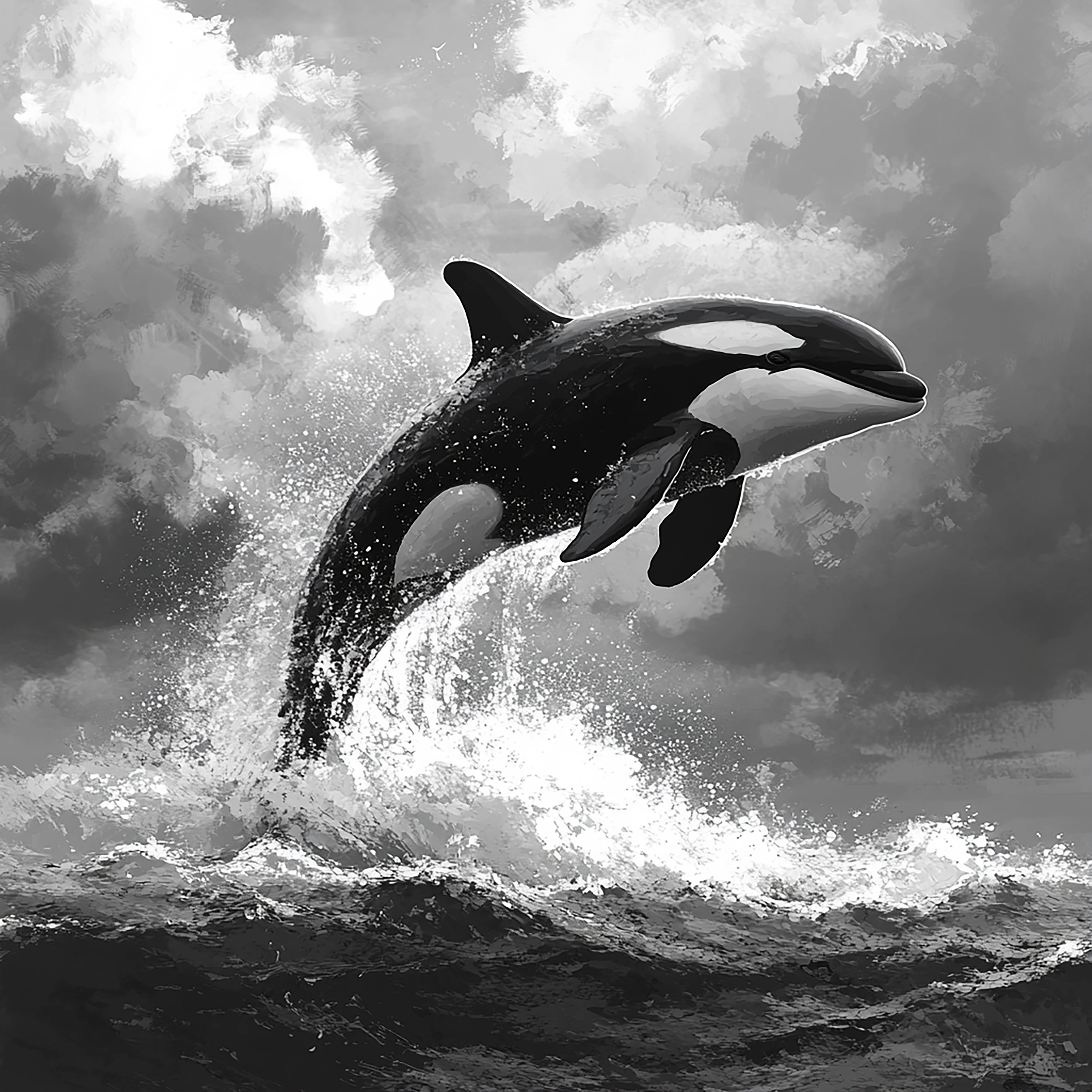 Orque majestueuse en saut spectaculaire papier peint artistique noir et blanc