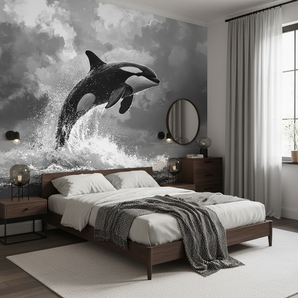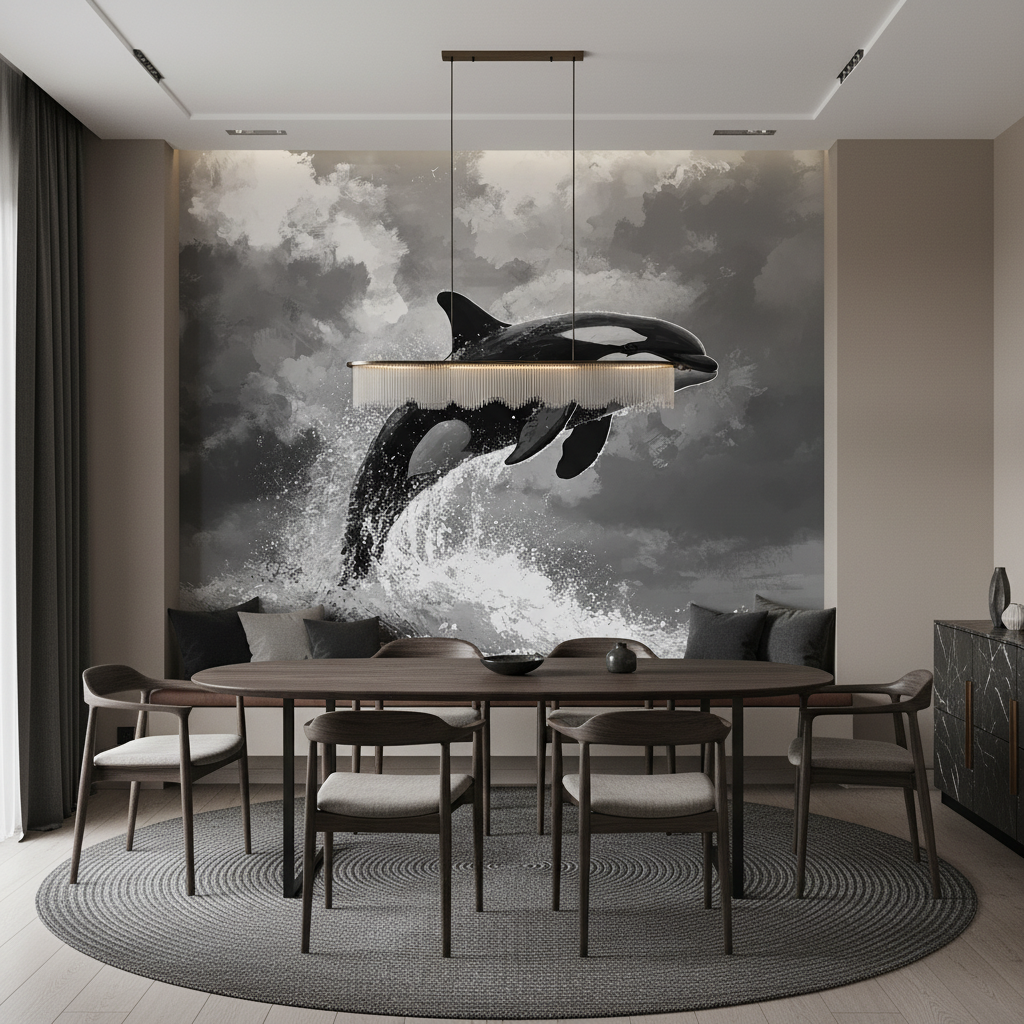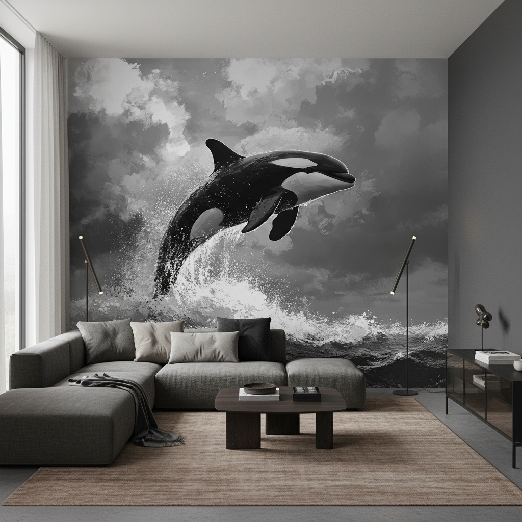 Ce papier peint cétacé artistique s’inscrit parfaitement dans les tendances actuelles du design biophilique, cette approche décorative qui reconnecte l’habitat aux forces de la nature. Sa dimension écologique symbolique résonne avec les préoccupations contemporaines, faisant de l’orque un ambassadeur de la beauté sauvage à préserver.