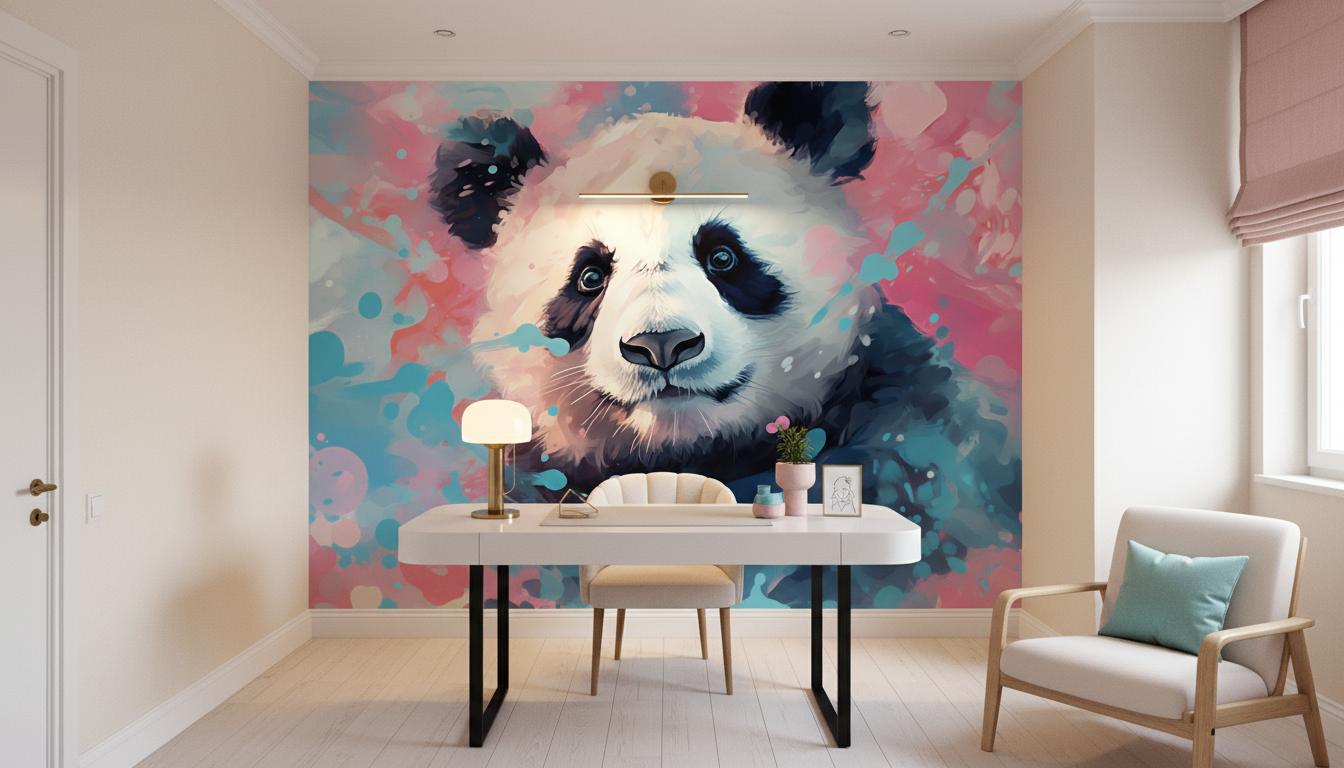 Comme une caresse chromatique venue d’un rêve éveillé, ce papier peint artistique révèle la beauté saisissante d’un panda géant baigné dans un océan de couleurs pastel. L’aquarelle digitale se déploie tel un souffle créatif, où chaque nuance semble danser autour de ce regard perçant et bienveillant.