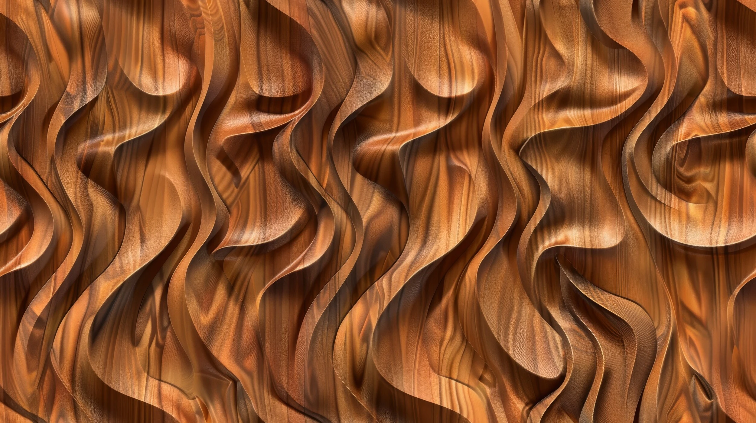 Cette création exceptionnelle présente un motif tridimensionnel aux ondulations fluides, évoquant les plus belles sculptures sur bois artisanales. Les reliefs sinueux se déploient en vagues harmonieuses, créant un jeu d’ombres et de lumières d’une richesse incomparable. Le style graphique réaliste reproduit avec une précision remarquable la texture authentique du bois travaillé, révélant chaque nuance, chaque grain, chaque reflet comme s’il s’agissait d’un véritable panneau sculpté.