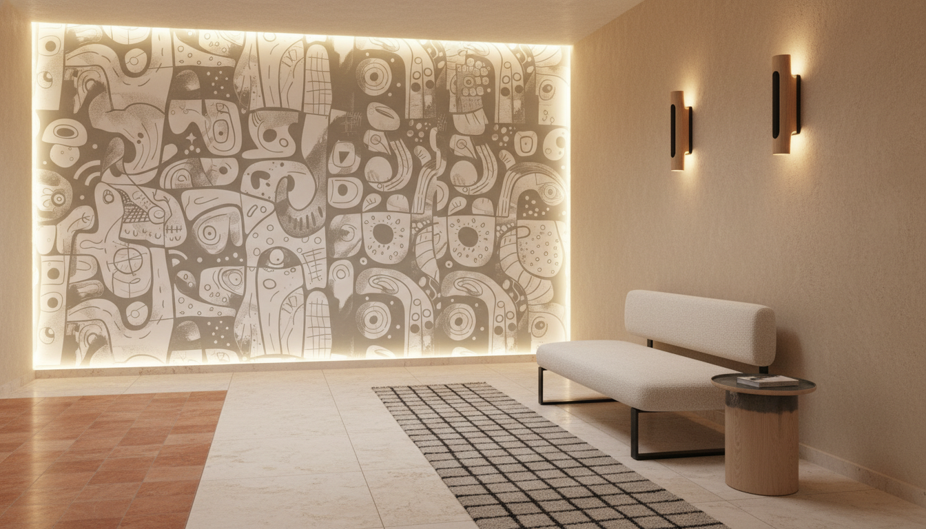 Ce papier peint salon moderne trouve naturellement sa place dans un séjour épuré où il habillera avec élégance un mur d’accent, dialoguant harmonieusement avec du mobilier scandinave aux lignes pures. Dans une chambre parentale, il créera une ambiance cocooning propice à la détente, sublimé par des textiles en lin naturel et des touches de bois brut. Pour un bureau créatif, il stimulera l’inspiration tout en préservant une atmosphère zen. Associez-le à des matières nobles comme le rotin tressé, l’osier naturel ou le métal patiné pour créer un dialogue texturel raffiné. Les teintes terre comme le terracotta doux, l’ocre rosé ou le vert sauge viendront réchauffer cette base neutre avec délicatesse.
