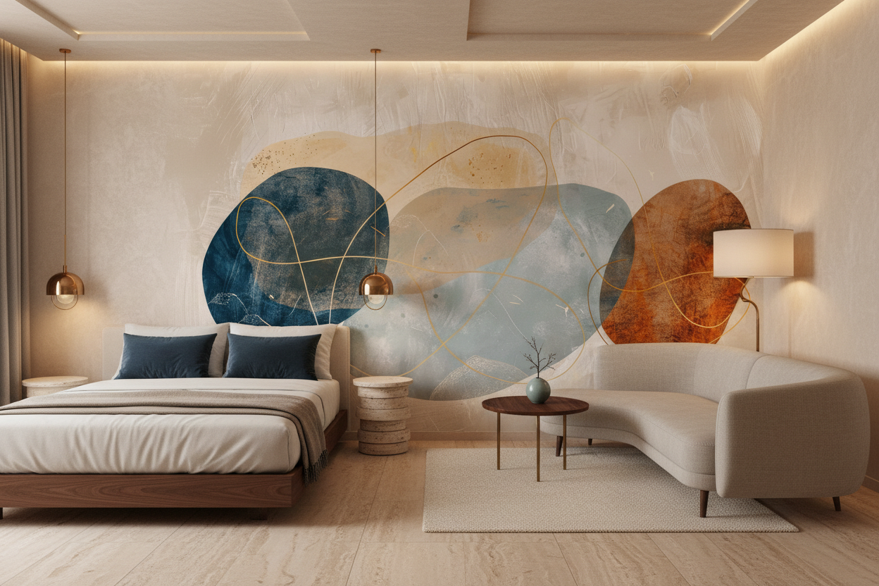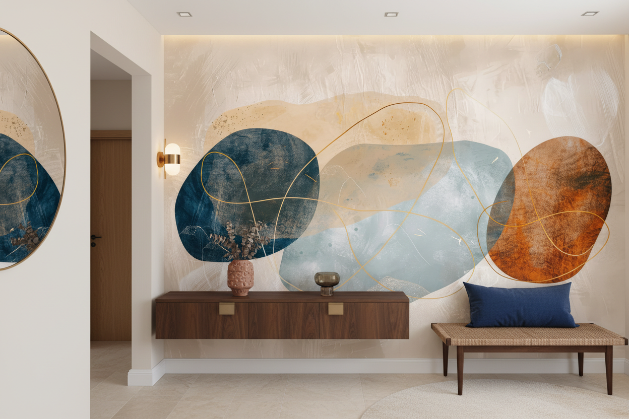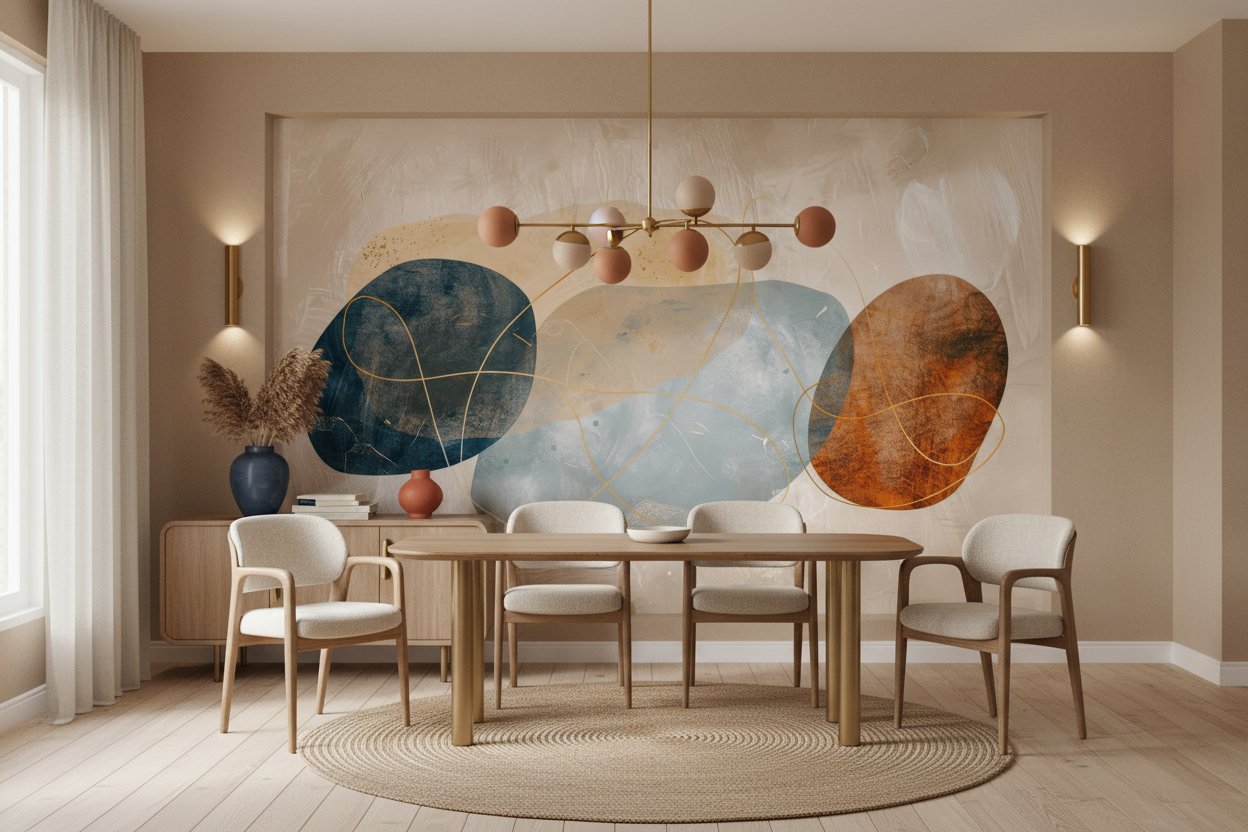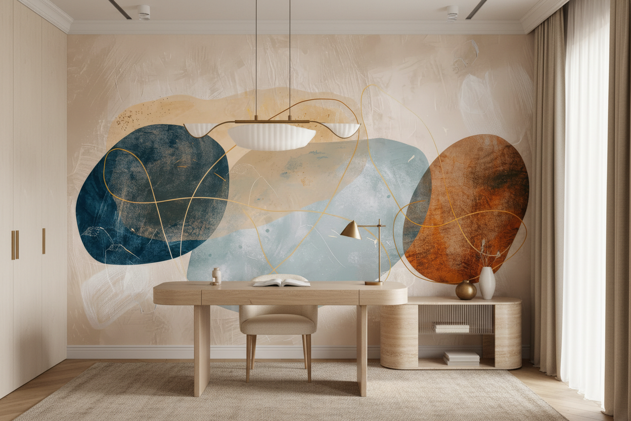 Transformez votre habitat en galerie d’art privée avec ce papier peint abstrait qui réinvente l’espace par la poésie pure des formes et des couleurs, où chaque journée commence par une invitation au voyage intérieur.