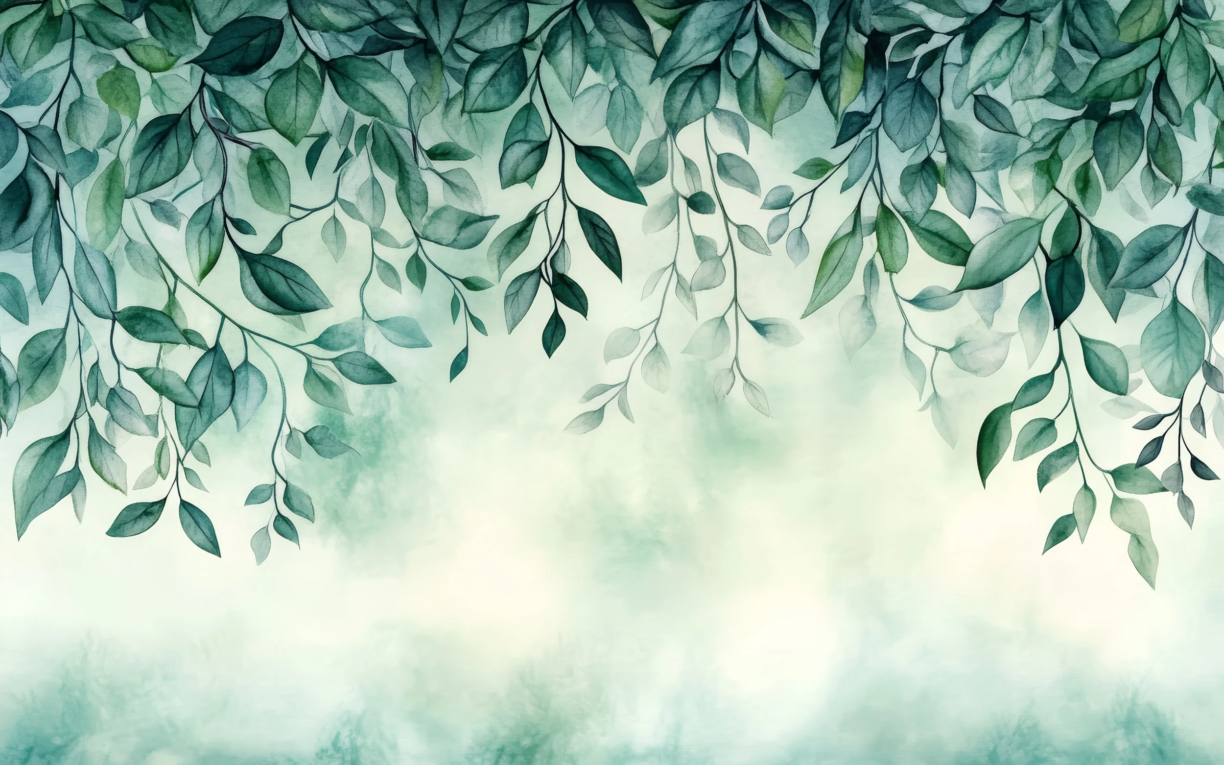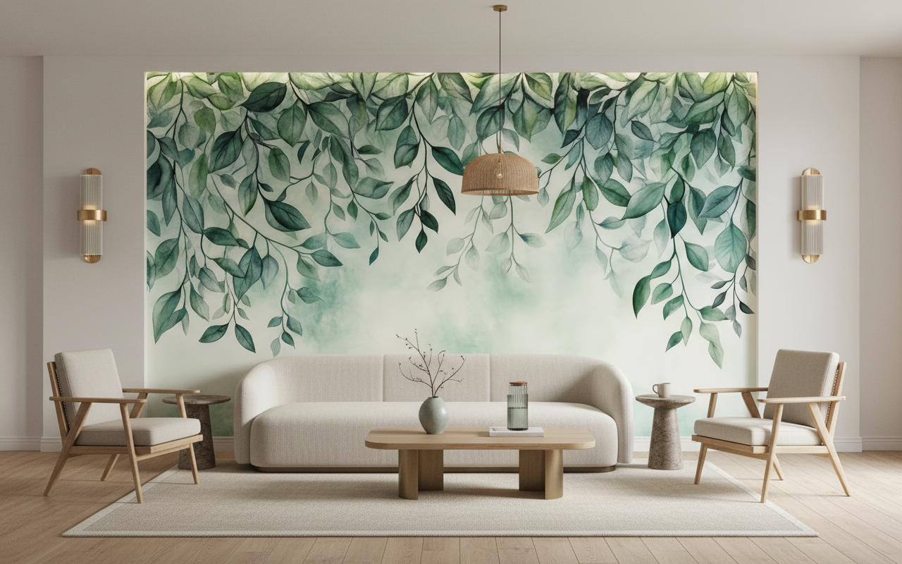 L’effet dégradé aquarellé apporte une dimension poétique remarquable, transformant ce papier peint nature en véritable œuvre d’art murale. Les feuillages suspendus créent un mouvement naturel qui guide le regard, instaurant une atmosphère de sérénité végétale propice à la détente et à la méditation.