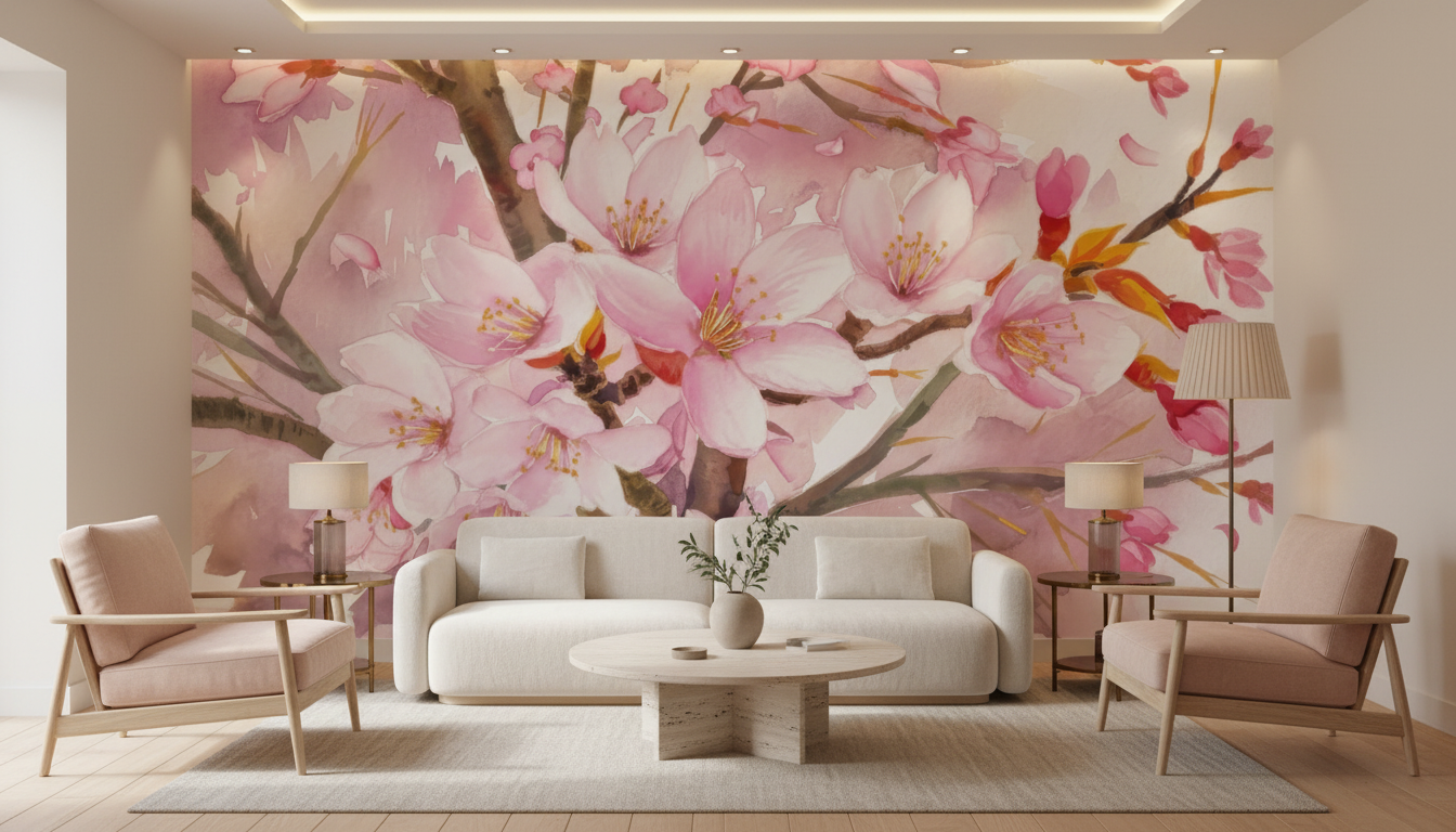 Évadez-vous avec ce papier peint fleurs de cerisier rose aquarelle. Créez une ambiance zen et poétique, sur mesure. Un décor mural unique pour transformer votre intérieur.