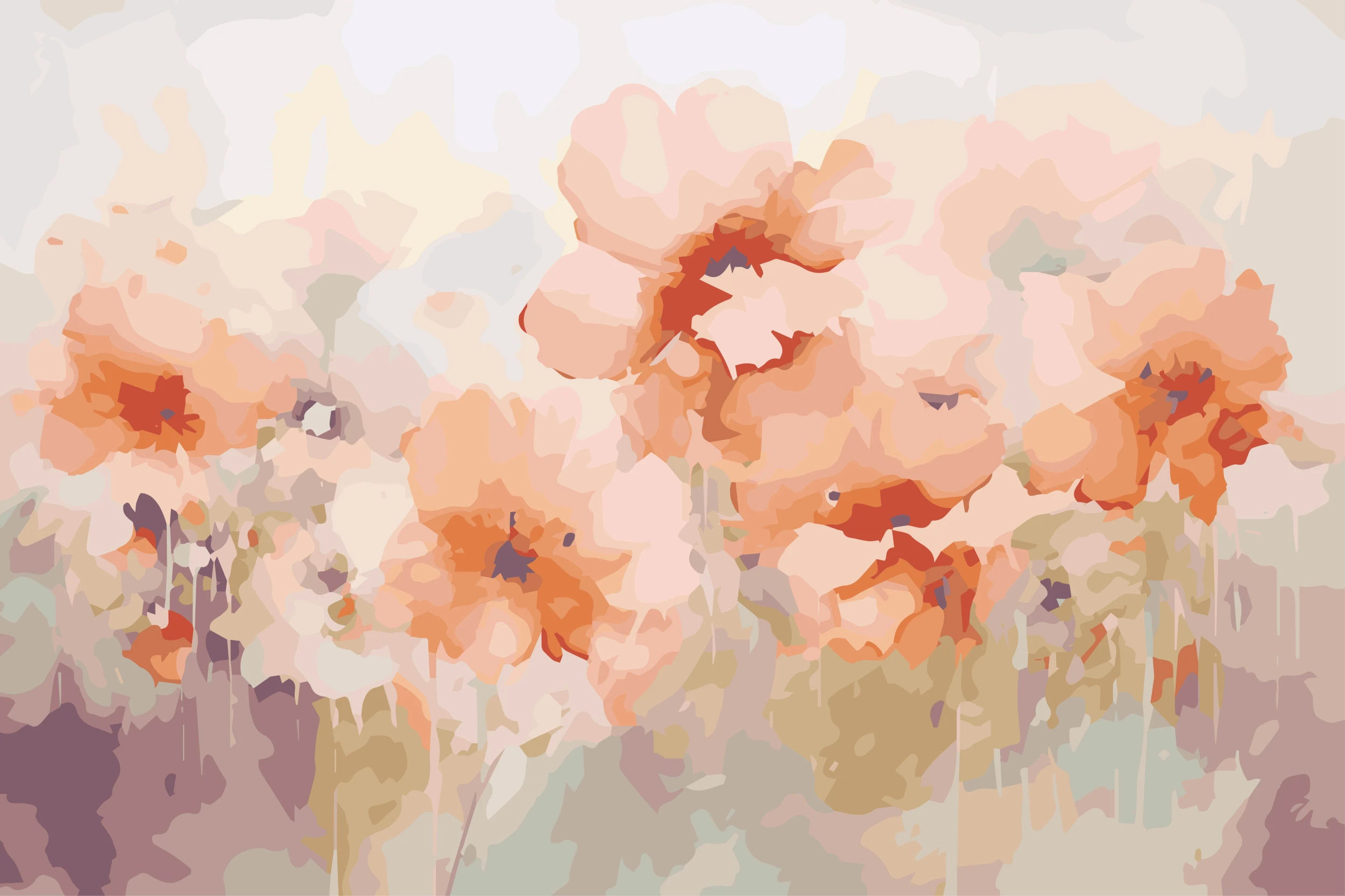 Ce papier peint floral révèle un bouquet généreux de pivoines délicates aux pétales vaporeux, peintes dans un style aquarelle artistique d’une finesse remarquable. Les fleurs roses corail et orangées s’épanouissent avec grâce, leurs cœurs aux nuances plus profondes contrastant subtilement avec la douceur nacrée des pétales extérieurs. Cette composition florale romantique s’enrichit de touches violettes discrètes et de feuillages aux tons olive et bronze, créant une harmonie chromatique d’une sophistication rare. Le style aquarelle moderne confère à l’ensemble une texture organique et vivante, où chaque coup de pinceau semble capturer l’essence même de la nature.