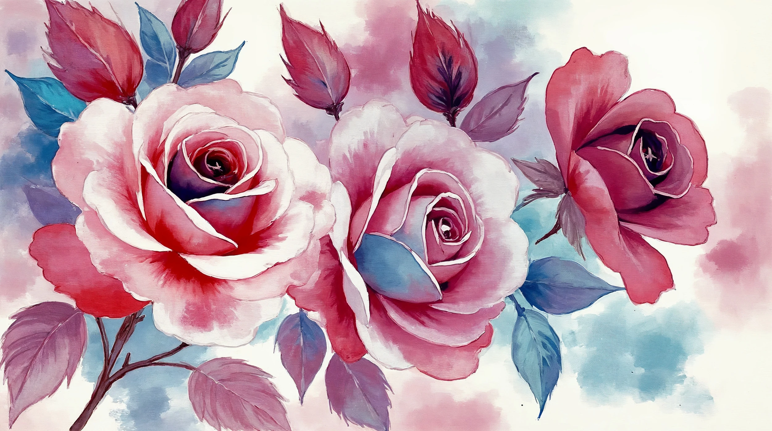 Laissez-vous envoûter par la danse vaporeuse de roses aquarellées qui semblent éclore sous vos yeux, baignées dans une brume de tendresse et de poésie florale.