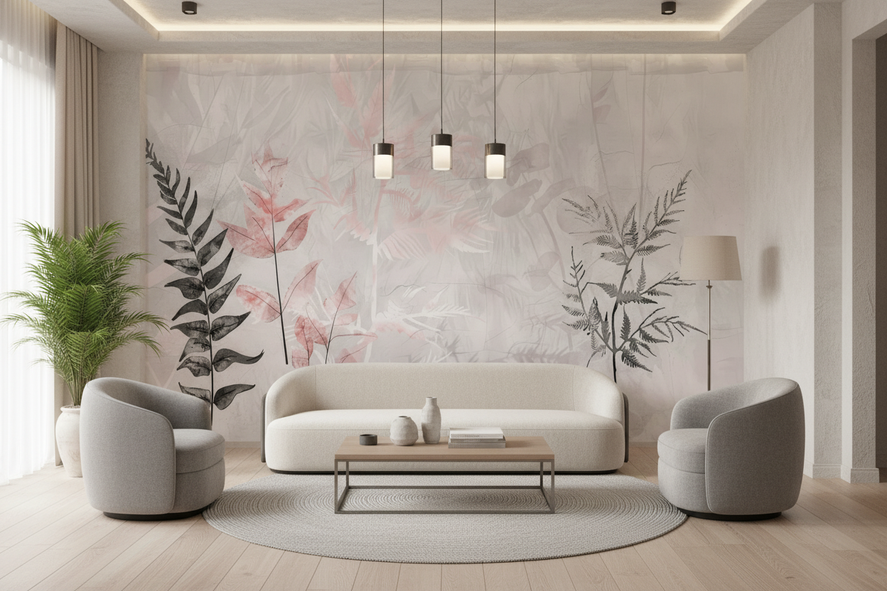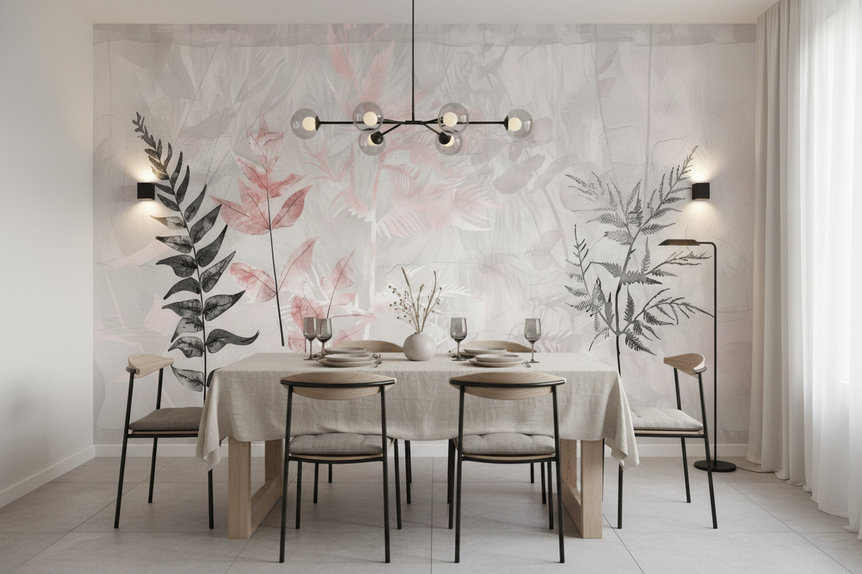 Parfait pour habiller un mur accent dans un salon contemporain, ce papier peint botanical moderne s’épanouit également dans une chambre parentale où il favorise la détente. Dans un bureau à domicile, il stimule la créativité sans distraire. Associez-le à du mobilier en bois clair, des textiles en lin naturel et des accessoires en laiton brossé pour créer une harmonie sophistiquée. Les tons roses poudrés du motif se marient parfaitement avec des coussins terracotta ou des plaids couleur sable.