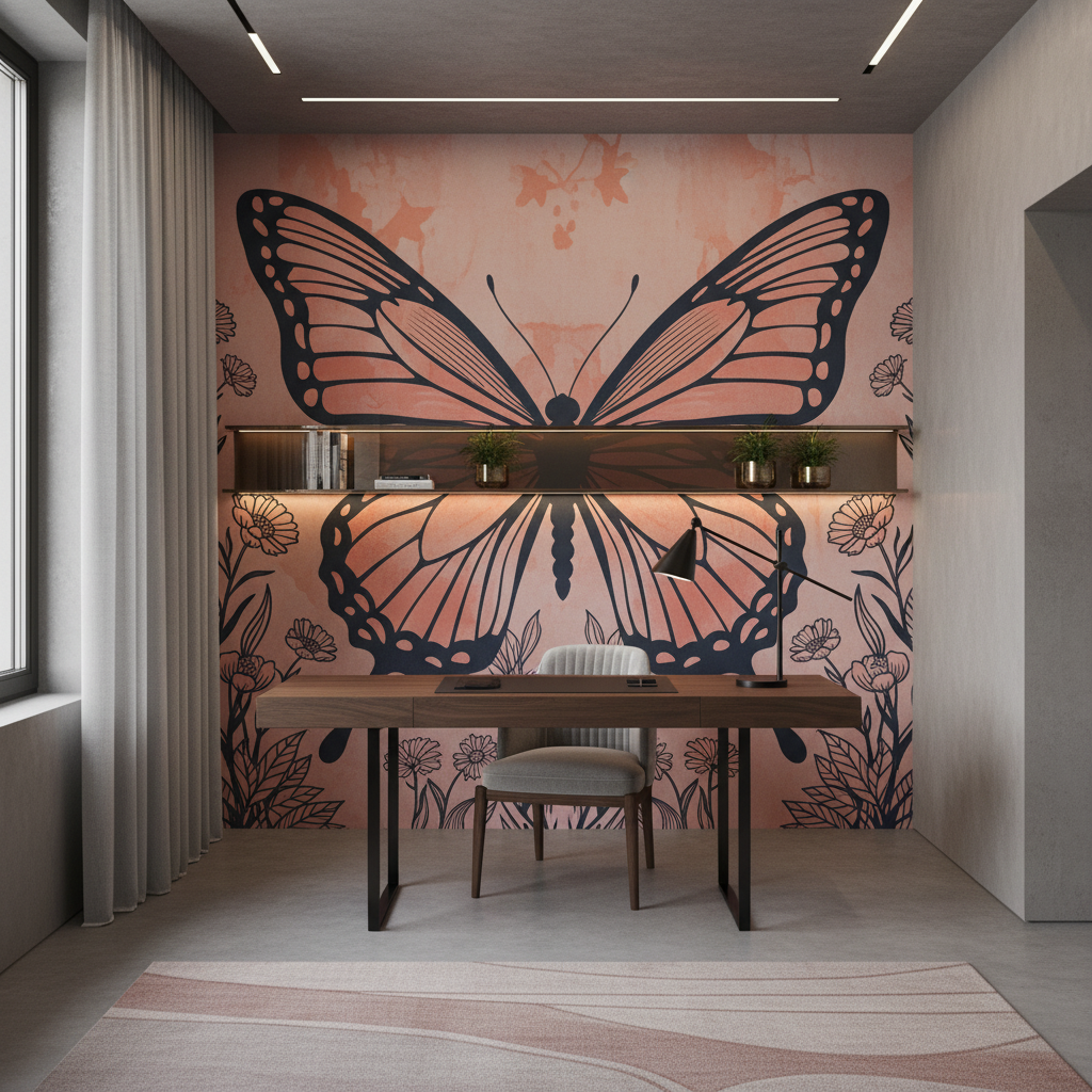 Ce papier peint moderne s’épanouira également dans un bureau créatif ou une chambre d’adolescent, apportant une dimension artistique et inspirante. L’éclairage tamisé révélera toute la subtilité de ses nuances, créant des jeux d’ombres et de lumière qui feront danser les papillons sur vos murs.