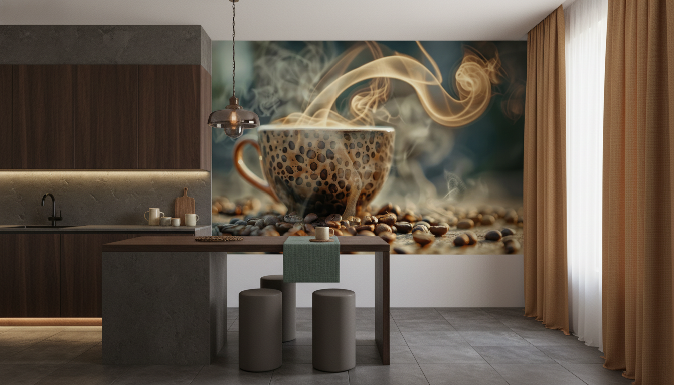 Ce papier peint cuisine transforme votre espace en un cocon de bien-être et de gourmandise. Il insuffle une atmosphère réconfortante et authentique, où se mêlent nostalgie et modernité. L’effet visuel est saisissant : chaque regard plonge dans cet univers sensoriel qui éveille instantanément l’envie d’un café fraîchement moulu. L’ambiance créée évoque les cafés parisiens d’antan, les torréfactions artisanales et l’art de vivre à la française.