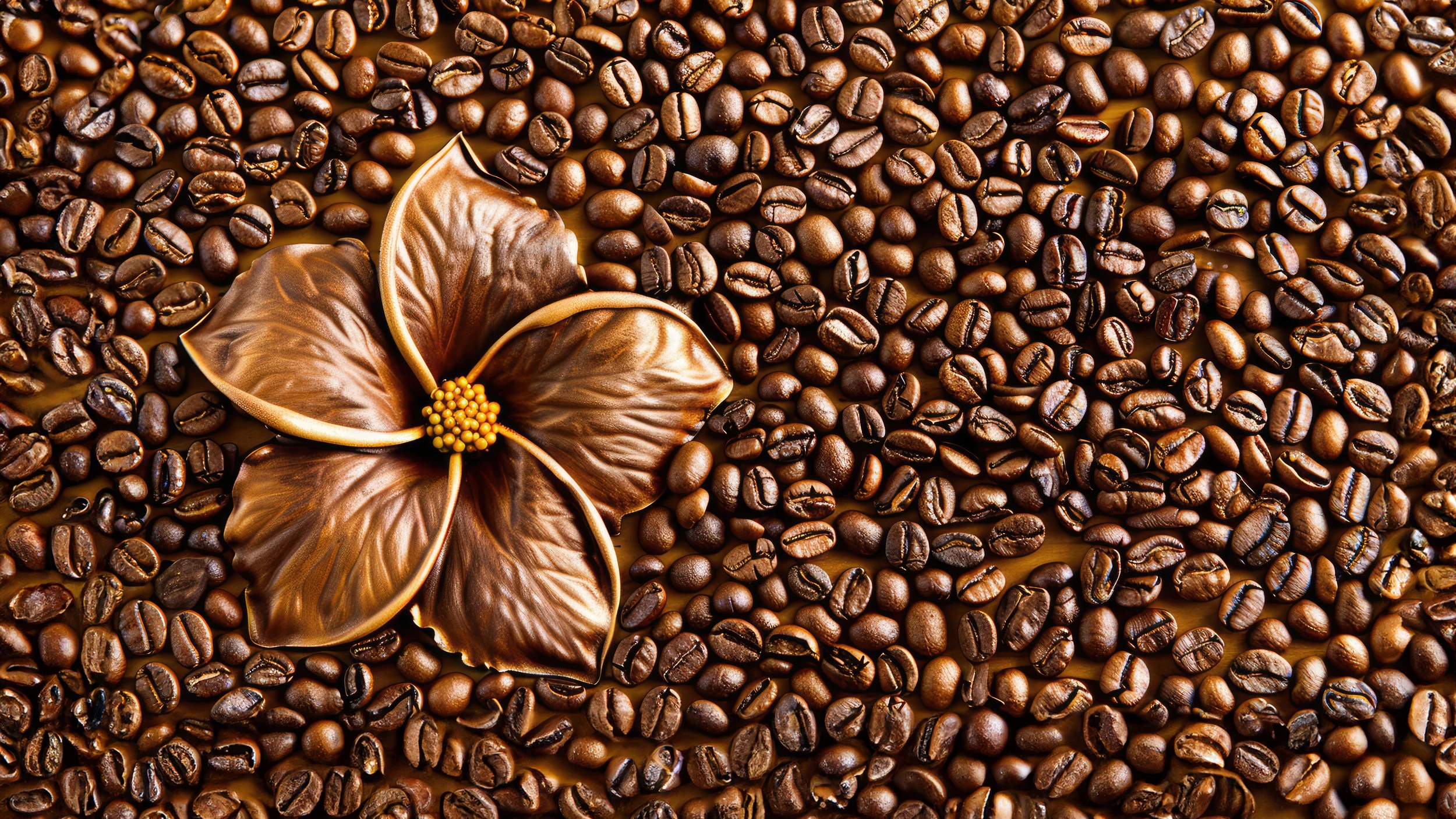 Ce papier peint café dévoile un univers sensoriel d’une richesse exceptionnelle, mettant en scène une multitude de grains de café torréfiés aux nuances profondes et chaleureuses. Au cœur de cette composition gourmande, une fleur sculptée en relief aux teintes caramel se déploie avec élégance, ses pétales délicatement veinés évoquant la préciosité d’un bijou artisanal. Les tons bruns se déclinent en une symphonie de nuances chocolat, du moka le plus sombre aux reflets dorés du café au lait, créant une profondeur visuelle remarquable. Ce papier peint gourmand révèle un style photographique ultra-réaliste, où chaque détail est sublimé par un jeu de lumière qui fait danser les ombres entre les grains.