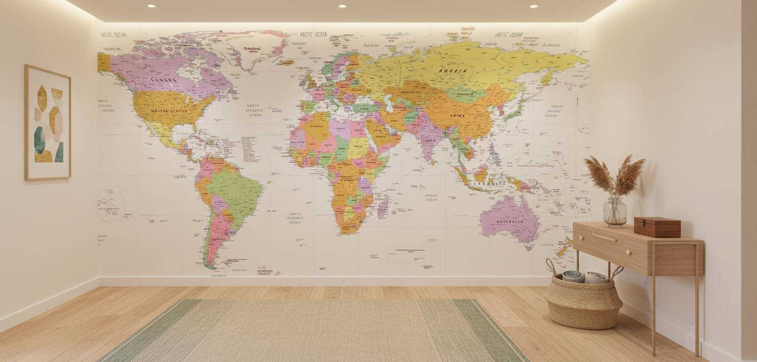 Transformez votre intérieur en un sanctuaire de la connaissance mondiale, où chaque mur raconte l’histoire infinie de notre planète aux mille visages colorés.