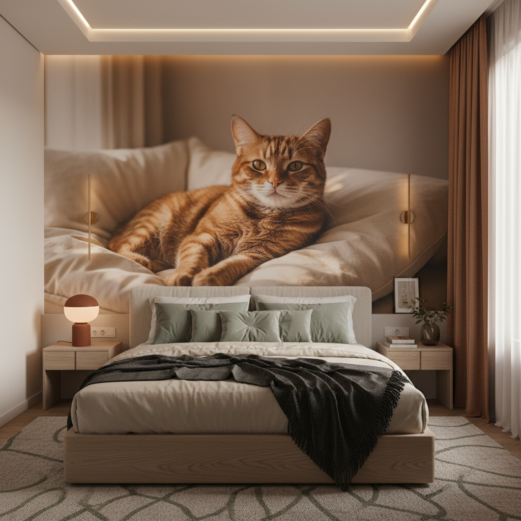 Ce papier peint chat artistique s’inscrit parfaitement dans les tendances actuelles de la décoration biophilique et du slow living, célébrant la connexion avec les êtres vivants et la beauté du quotidien. Il séduira autant les amoureux des chats que les passionnés d’art contemporain et de déc