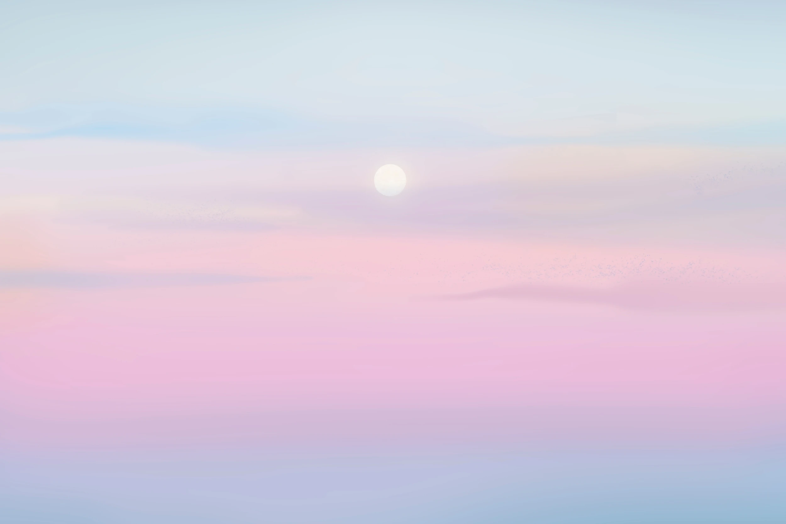 Cette création artistique sublime révèle un paysage céleste minimaliste d’une beauté époustouflante. Au centre de cette composition poétique, une lune opalescente trône majestueusement, baignant l’ensemble d’une lumière nacrée et mystérieuse. Les nuages vaporeux se déploient en strates délicates, créant un dégradé naturel qui évoque les plus beaux couchers de soleil nordiques. Le style graphique, proche de l’aquarelle numérique, confère à ce papier peint panoramique une texture douce et vaporeuse, où chaque nuance se fond harmonieusement dans la suivante.