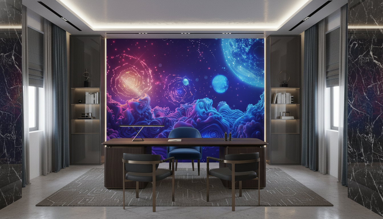 Ce revêtement mural artistique s’inscrit dans la tendance du design biophilique revisité, où la nature cosmique remplace la végétation traditionnelle. Il répond aux aspirations contemporaines d’évasion et de reconnexion avec l’univers, tout en apportant une sophistication esthétique remarquable à votre habitat.