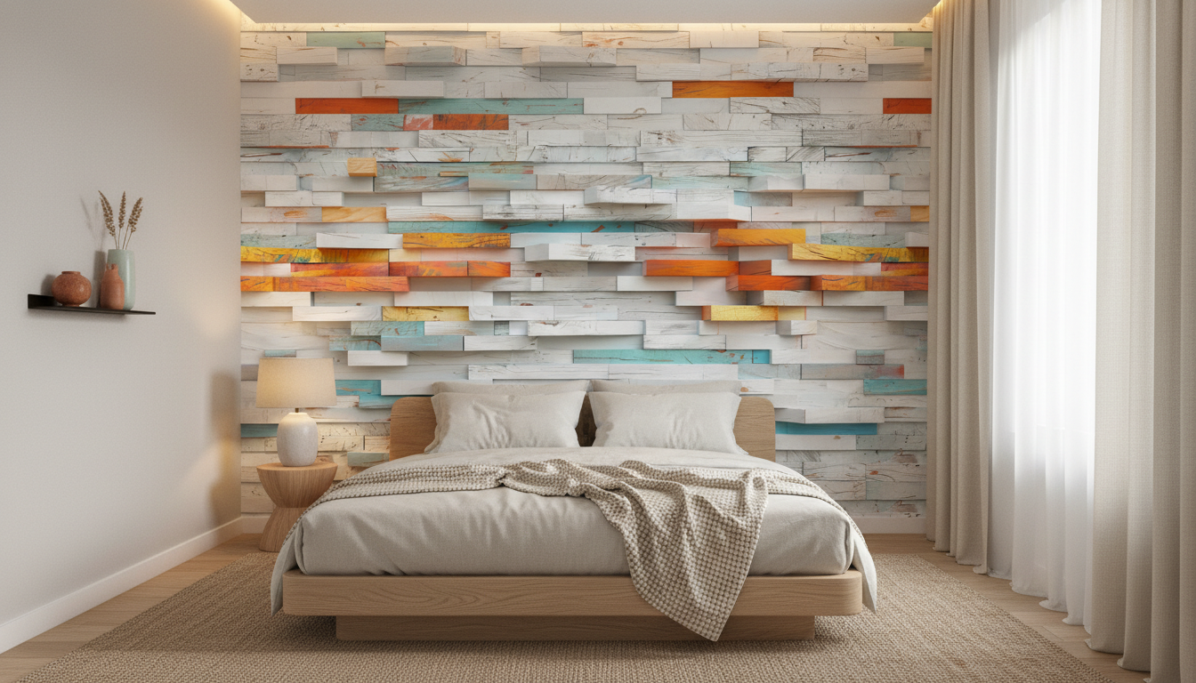 Papier Peint Effet Bois Coloré Relief Tridimensionnel Moderne