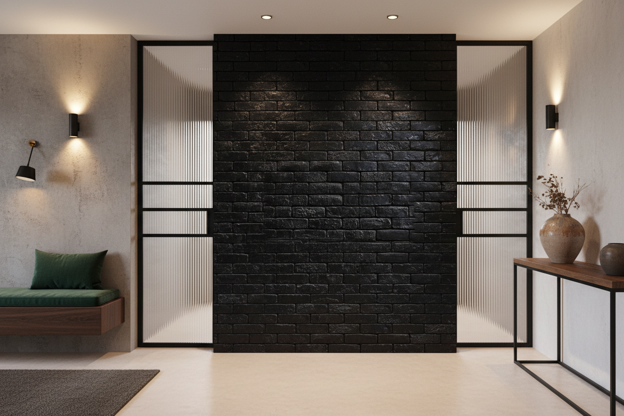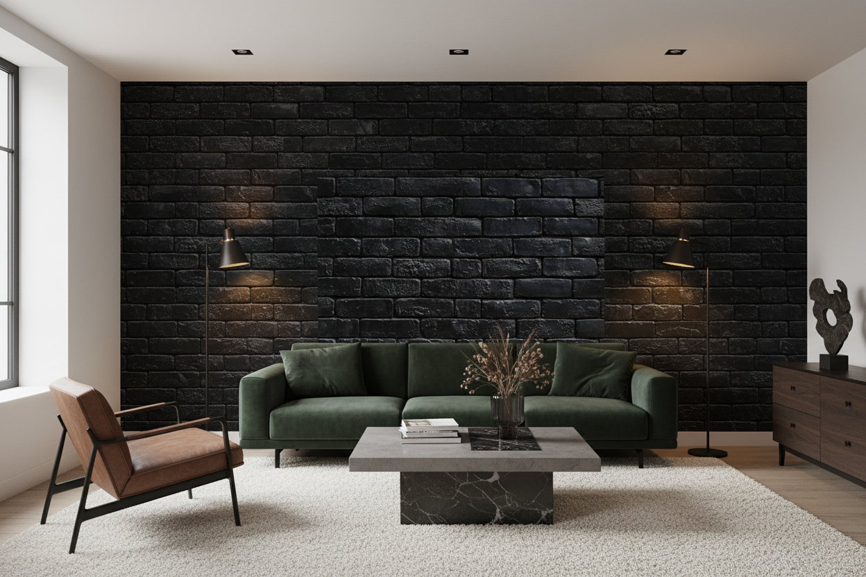 Ce revêtement mural effet brique trouvera naturellement sa place dans un salon moderne, où il formera un magnifique mur d’accent derrière un canapé en cuir cognac ou des fauteuils en velours émeraude. Dans une chambre parentale, il créera une tête de lit spectaculaire, particulièrement mise en valeur par un éclairage indirect et du linge de maison en lin naturel. Les espaces de travail et bureaux bénéficieront également de son caractère inspirant, créant un environnement propice à la créativité.