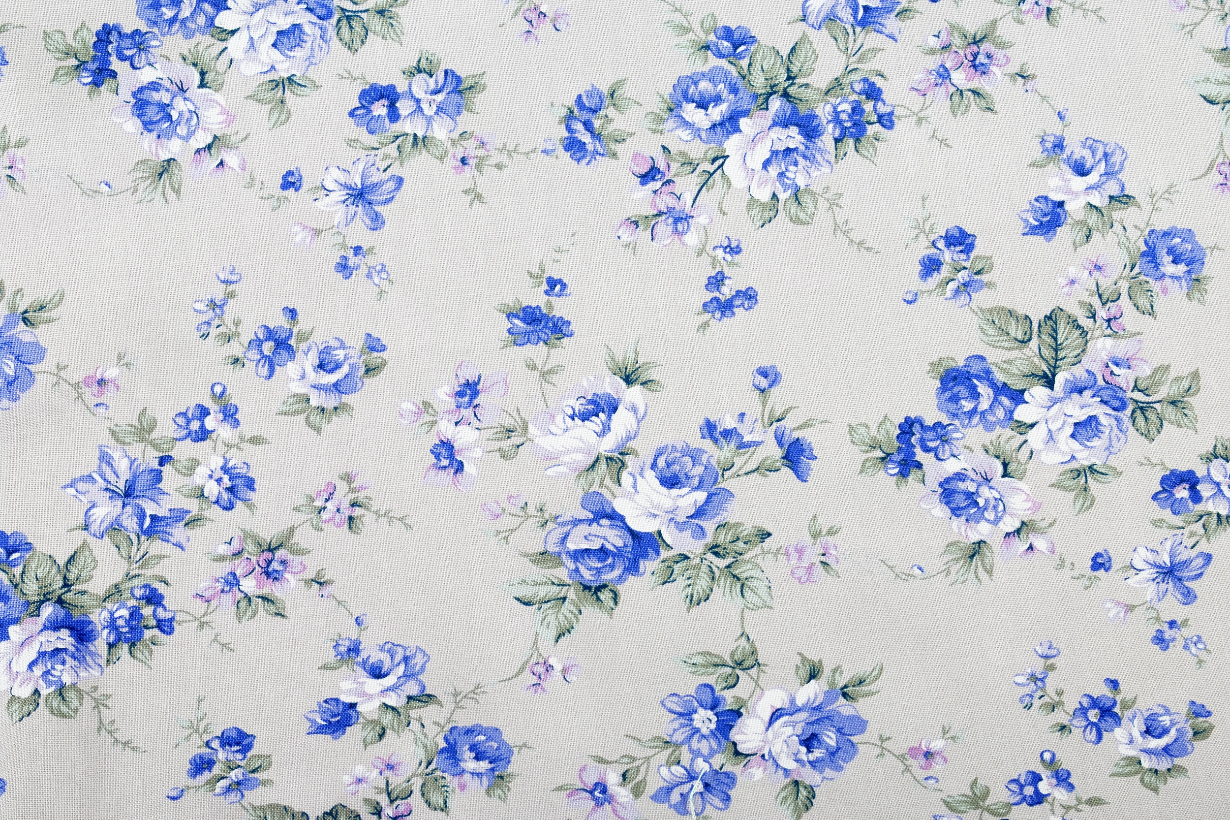Papier peint fleuri vintage aux roses bleues sur fond beige