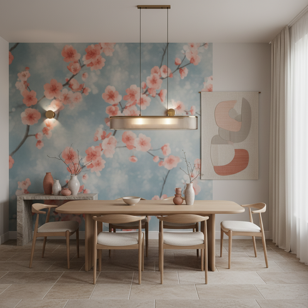L’ambiance généée par ce papier peint zen évoque la quiétude d’un matin de printemps, où la rosée perle encore sur les pétales naissants. Les tons corail et turquoise créent une harmonie chromatique apaisante, propice à la détente et à la contemplation. Cette palette de couleurs douces transforme instantanément l’atmosphère d’une pièce en sanctuaire de bien-être.