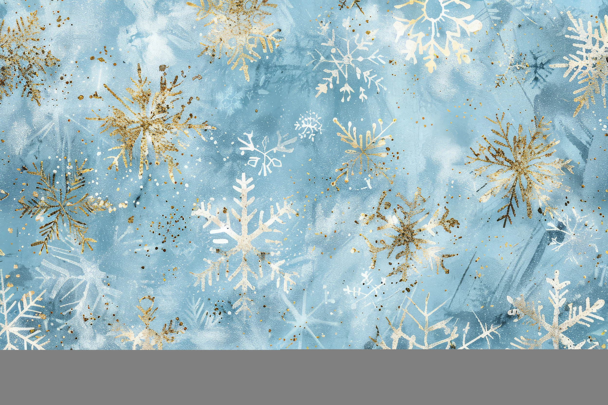 Ce papier peint hivernal dévoile un ballet féerique de flocons de neige dorés et blancs qui dansent avec grâce sur un fond bleu glacier aux nuances aquarellées. L’artiste a su capturer l’essence même de la saison froide à travers une technique mixte alliant peinture à l’eau et dorure délicate. Les cristaux de neige se déclinent dans une infinité de formes géométriques : étoiles à six branches ciselées, rosaces complexes aux ramifications minutieuses, et motifs radiants aux reflets dorés scintillants. Cette symphonie visuelle évoque la splendeur des paysages enneigés sous un ciel d’hiver, où chaque détail brille d’une lumière dorée comme touché par les premiers rayons du soleil matinal.