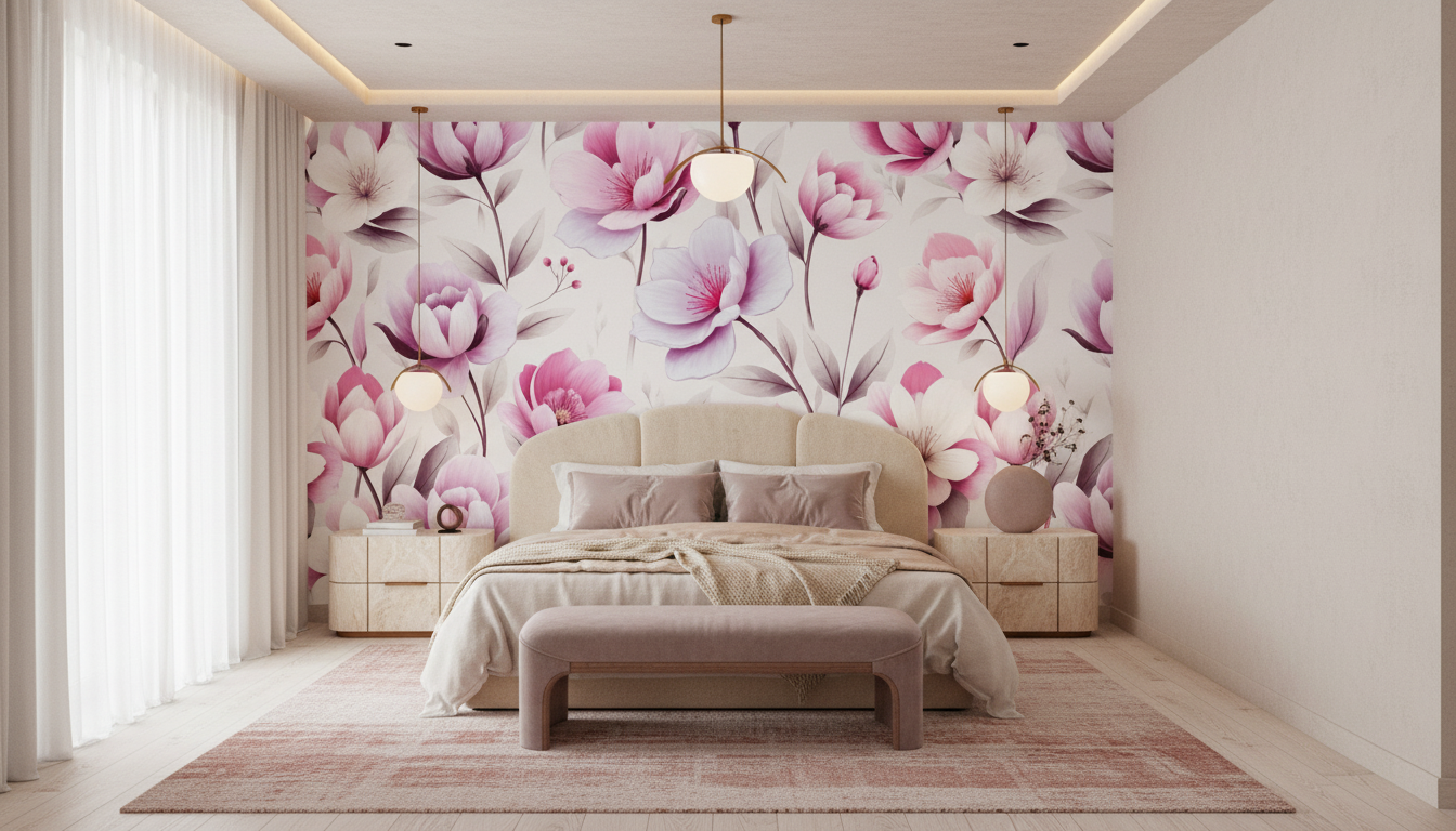 Parfaitement adapté pour sublimer une chambre parentale, ce papier peint rose et blanc créera un cocon de tendresse propice à la détente. Dans un salon, il apportera une note de sophistication florale en habillant un pan de mur ou une alcôve. Pour une chambre de petite fille, ces fleurs délicates éveilleront les rêves les plus doux. Côté associations déco, privilégiez des meubles en bois blanc ou en chêne clair, des textiles en lin naturel ou en coton blanc, et des touches de laiton doré pour réchauffer l’ensemble. Les tons beiges et crème s’harmoniseront parfaitement avec cette palette rose poudrée.