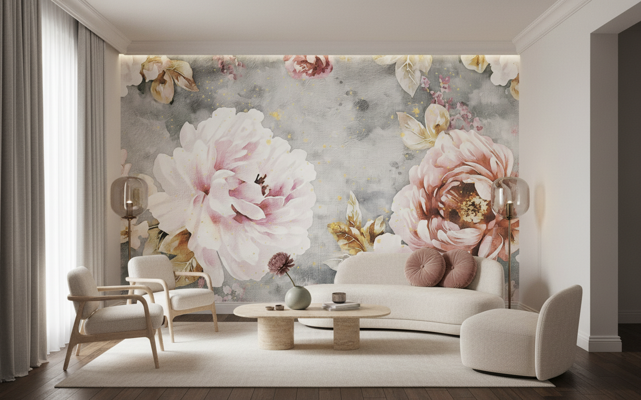 Pour sublimer cette décoration murale florale, privilégiez des teintes complémentaires comme le blanc cassé, le beige rosé ou encore des touches de vert sauge. Ce revêtement mural artistique s’intègre parfaitement dans un univers déco scandinave revisité, bohème chic ou encore dans un style néo-classique moderne.