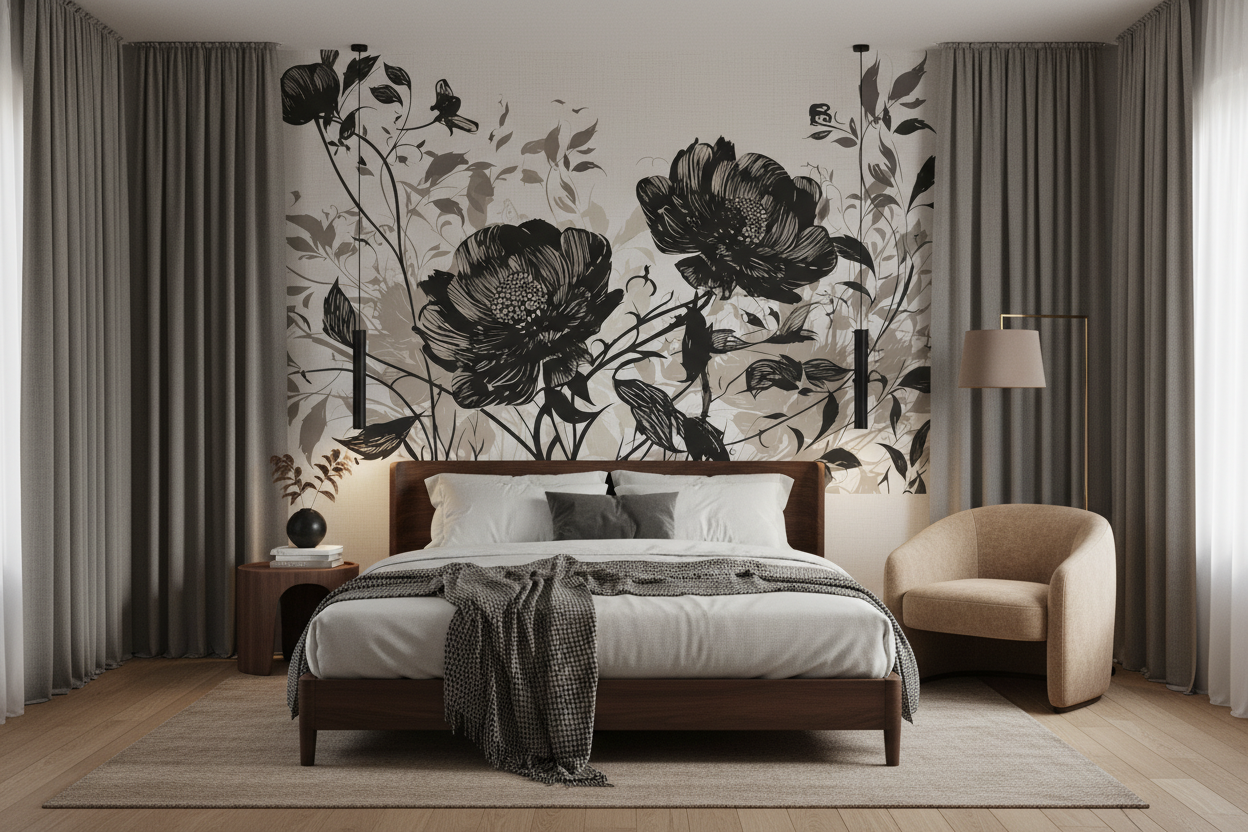 Laissez-vous envoûter par cette symphonie florale où la beauté intemporelle des pivoines s’épanouit dans un ballet graphique d’une élégance saisissante, transformant votre intérieur en un jardin d’artiste aux accents romantiques et sophistiqués.