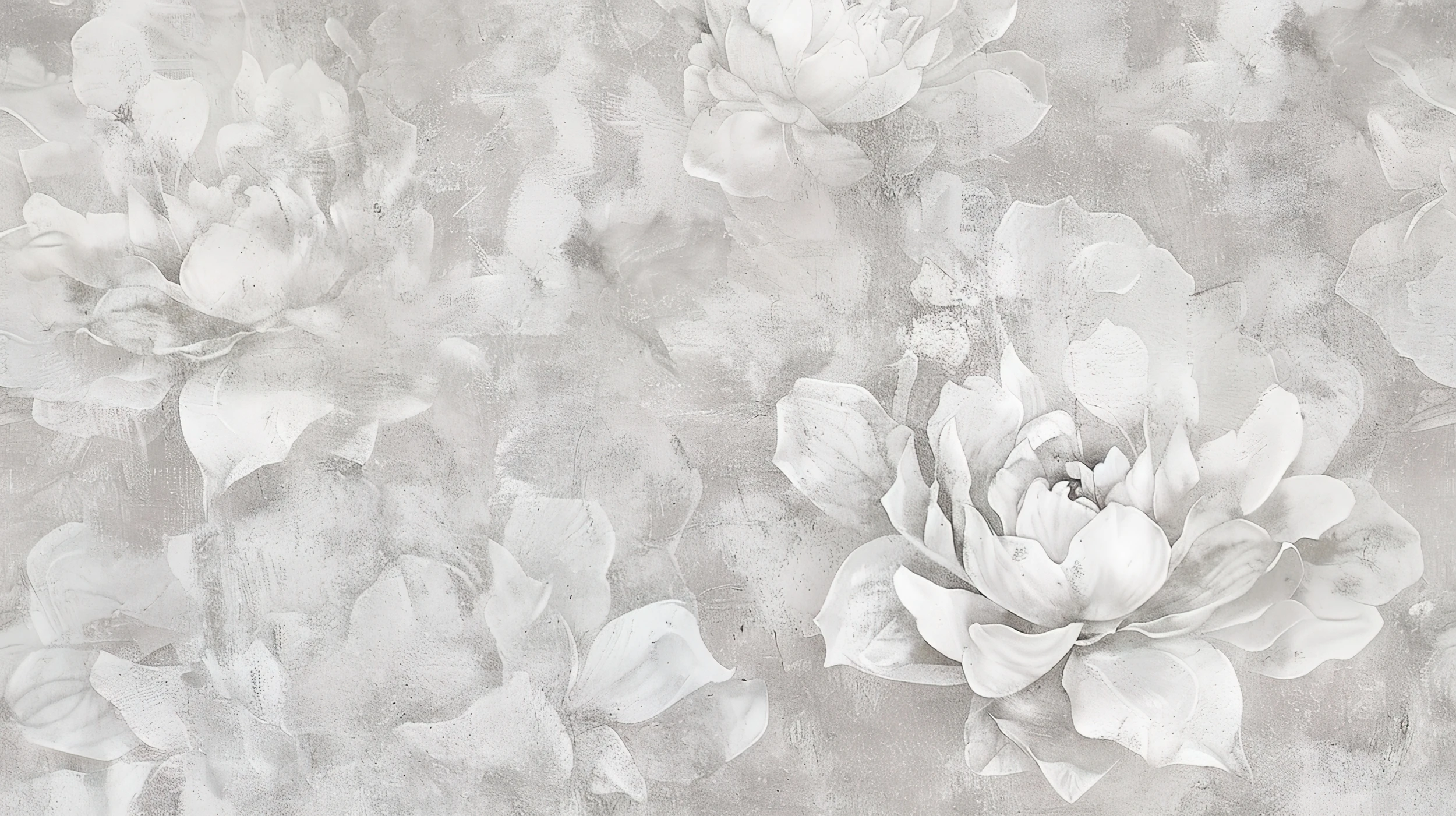 Cette création artistique révèle des fleurs de pivoine magnifiquement stylisées, capturées dans toute leur splendeur naturelle. Le motif floral vintage présente des corolles généreuses aux pétales soyeux, finement détaillées dans un style aquarelle d’une rare subtilité. Les nuances de gris s’entremêlent harmonieusement, du blanc nacré au gris perle, créant des jeux d’ombres et de lumière qui donnent vie à chaque fleur. Cette composition monochrome révèle la beauté pure du dessin botanique, où chaque nervure de pétale semble caressée par un pinceau délicat.