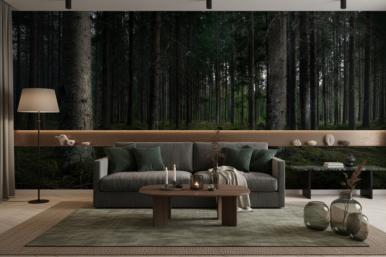 Ce papier peint décoratif forêt trouve naturellement sa place dans une chambre parentale où il favorisera un sommeil réparateur, ou dans un salon cosy pour créer un mur d’accent spectaculaire. Il s’épanouit particulièrement dans un bureau à domicile, où son caractère apaisant stimule la concentration et la créativité. Pour sublimer cette décoration murale, associez-la à du mobilier en bois brut, des textiles en lin naturel et des accessoires en matières organiques. Les tons neutres comme le beige, le blanc cassé ou le gris perle viendront parfaitement compléter cette ambiance sylvestre.