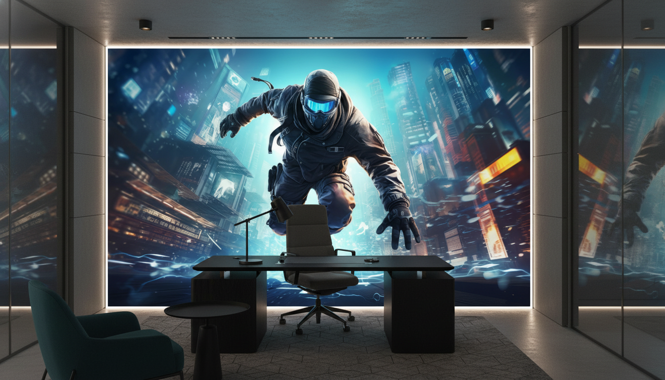 Cette décoration murale futuriste convient également aux espaces professionnels innovants, aux start-ups technologiques ou aux showrooms high-tech qui souhaitent véhiculer une image d’avant-garde et de dynamisme créatif.