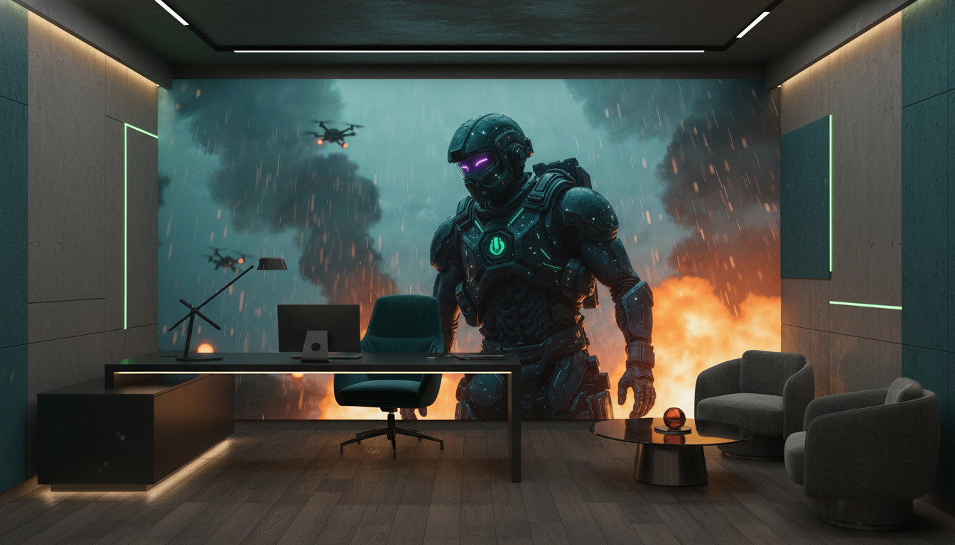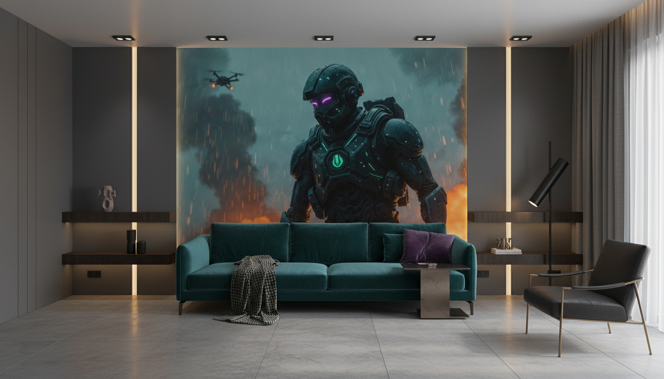 Cette décoration murale futuriste transforme instantanément l’atmosphère de votre intérieur, créant une ambiance mystérieuse et captivante. L’effet immersif de ce papier peint gaming transporte les occupants dans un univers parallèle, stimulant l’imagination et nourrissant les rêves d’aventures extraordinaires. La palette chromatique sophistiquée, mêlant bleus métalliques, verts technologiques et oranges incandescents, génère une luminosité particulière qui évolue selon l’éclairage de la pièce.