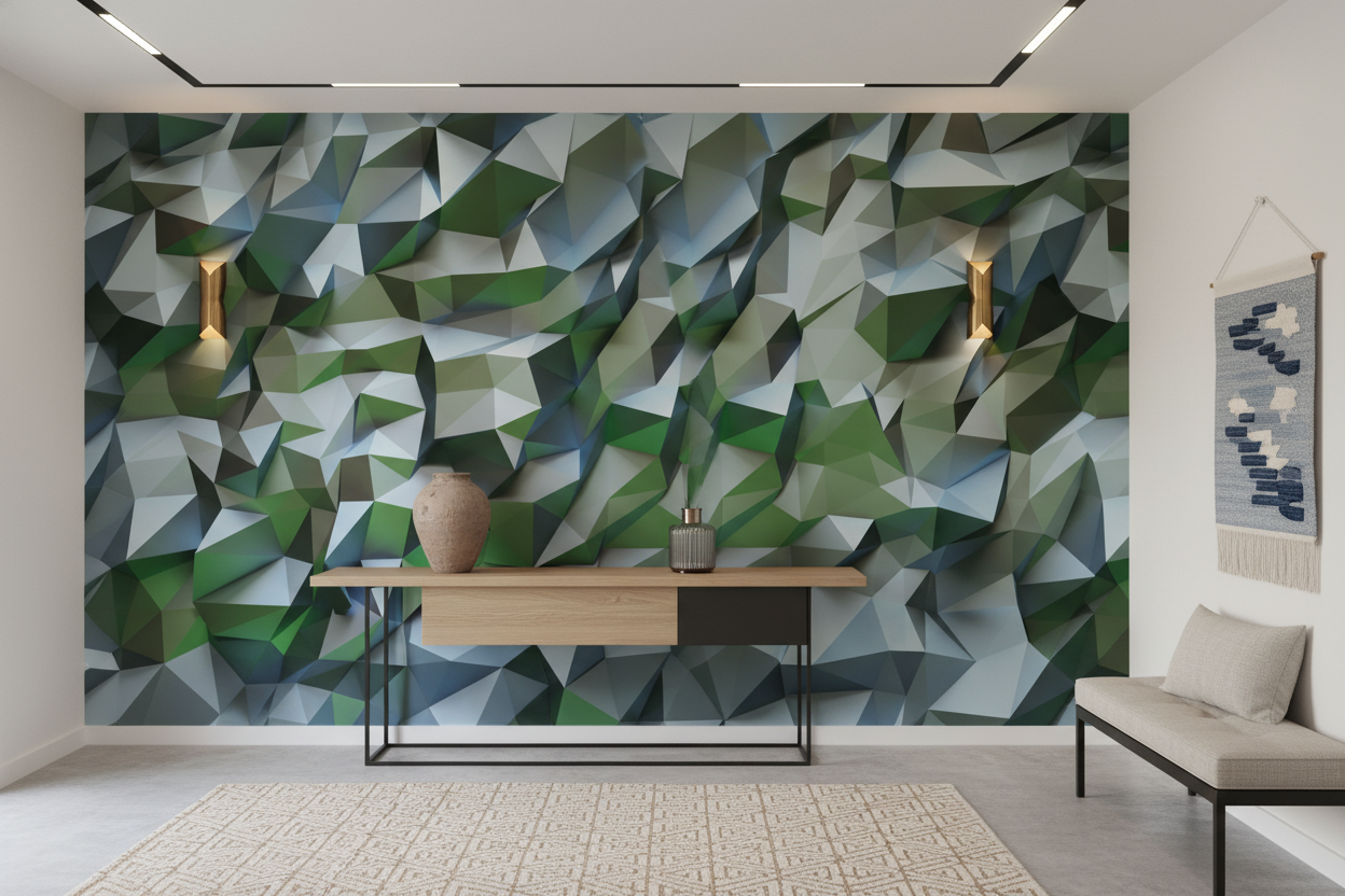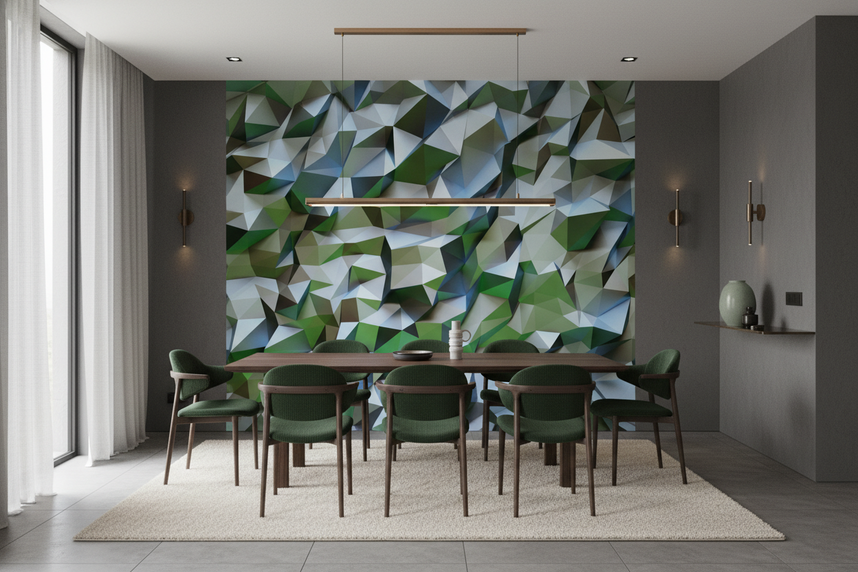 Papier Peint Géométrique – Cristaux Verts et Bleus