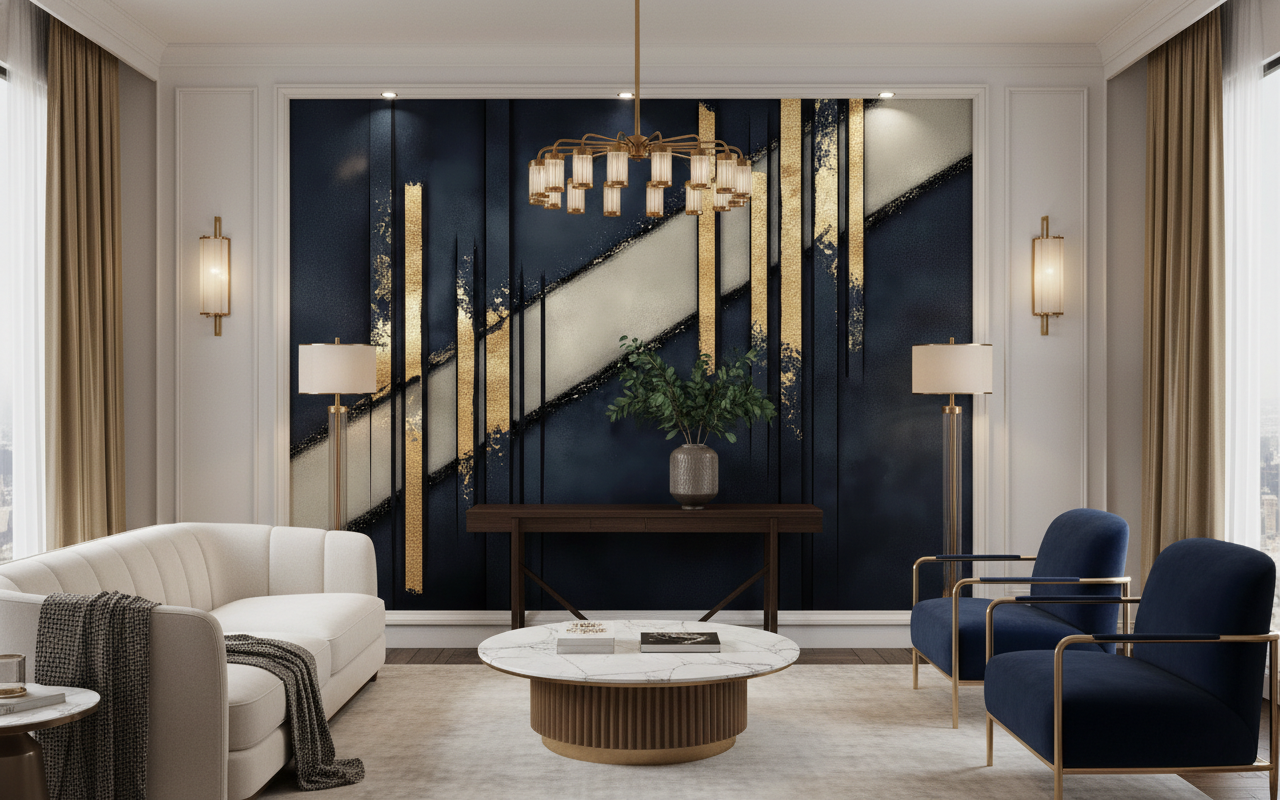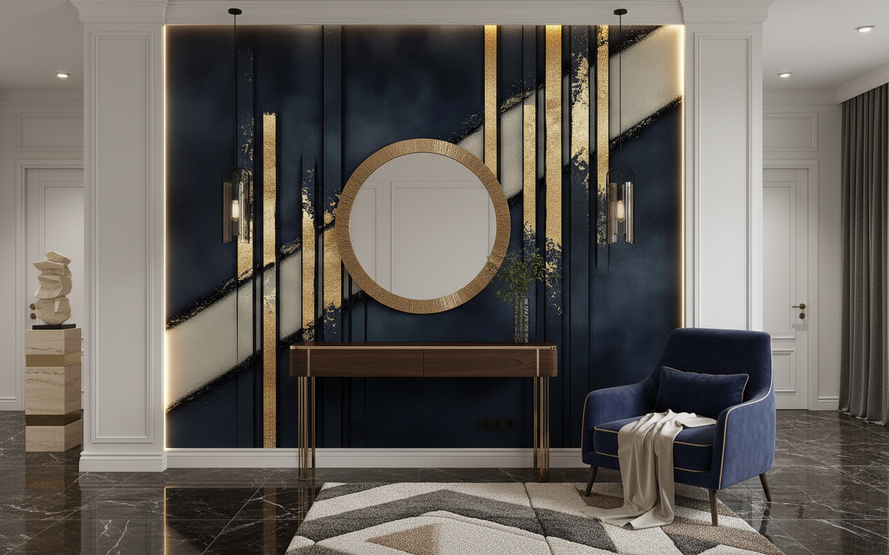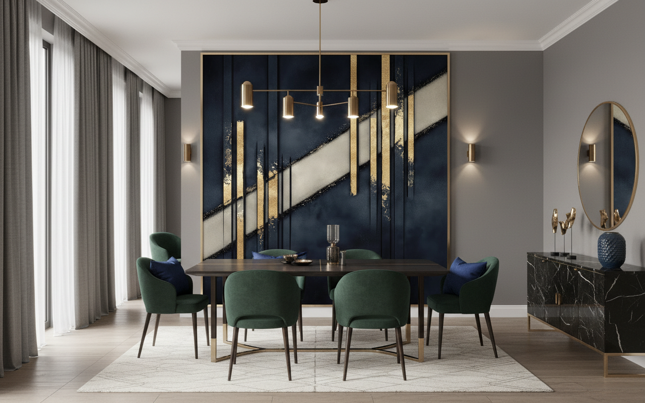 Laissez-vous envoûter par cette symphonie visuelle où l’art décoratif rencontre la sophistication contemporaine, créant un univers à la fois mystérieux et raffiné qui transformera votre intérieur en galerie d’art moderne.