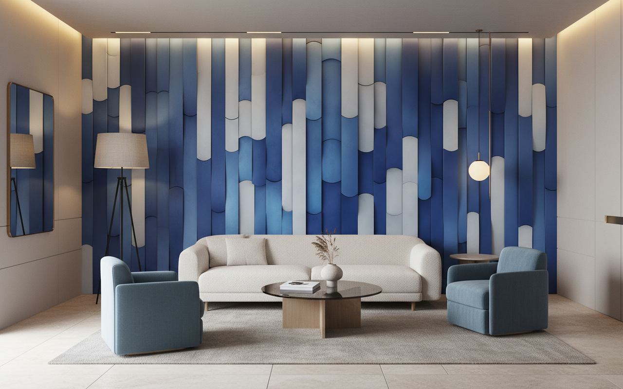 Cette création murale distille une atmosphère de sérénité moderne et de sophistication urbaine. L’harmonie des bleus apaisants invite à la contemplation et à l’évasion, transformant instantanément votre intérieur en un sanctuaire de design contemporain. La rythmique des volumes crée une dynamique visuelle captivante, oscillant entre calme zen et énergie créative, parfaite pour stimuler l’inspiration tout en préservant une ambiance reposante.