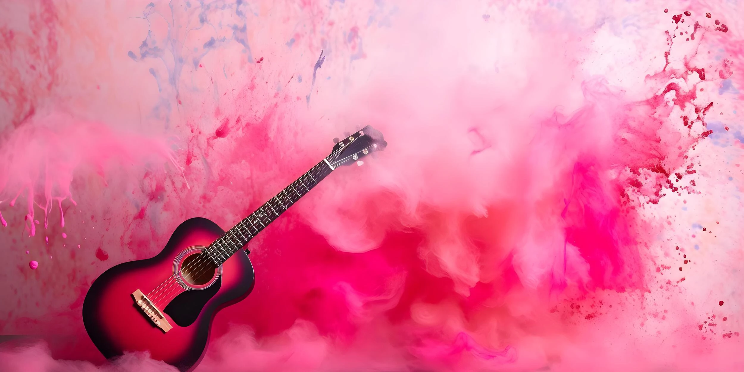 Papier Peint Guitare Acoustique sur Fond Aquarelle Rose Artistique
