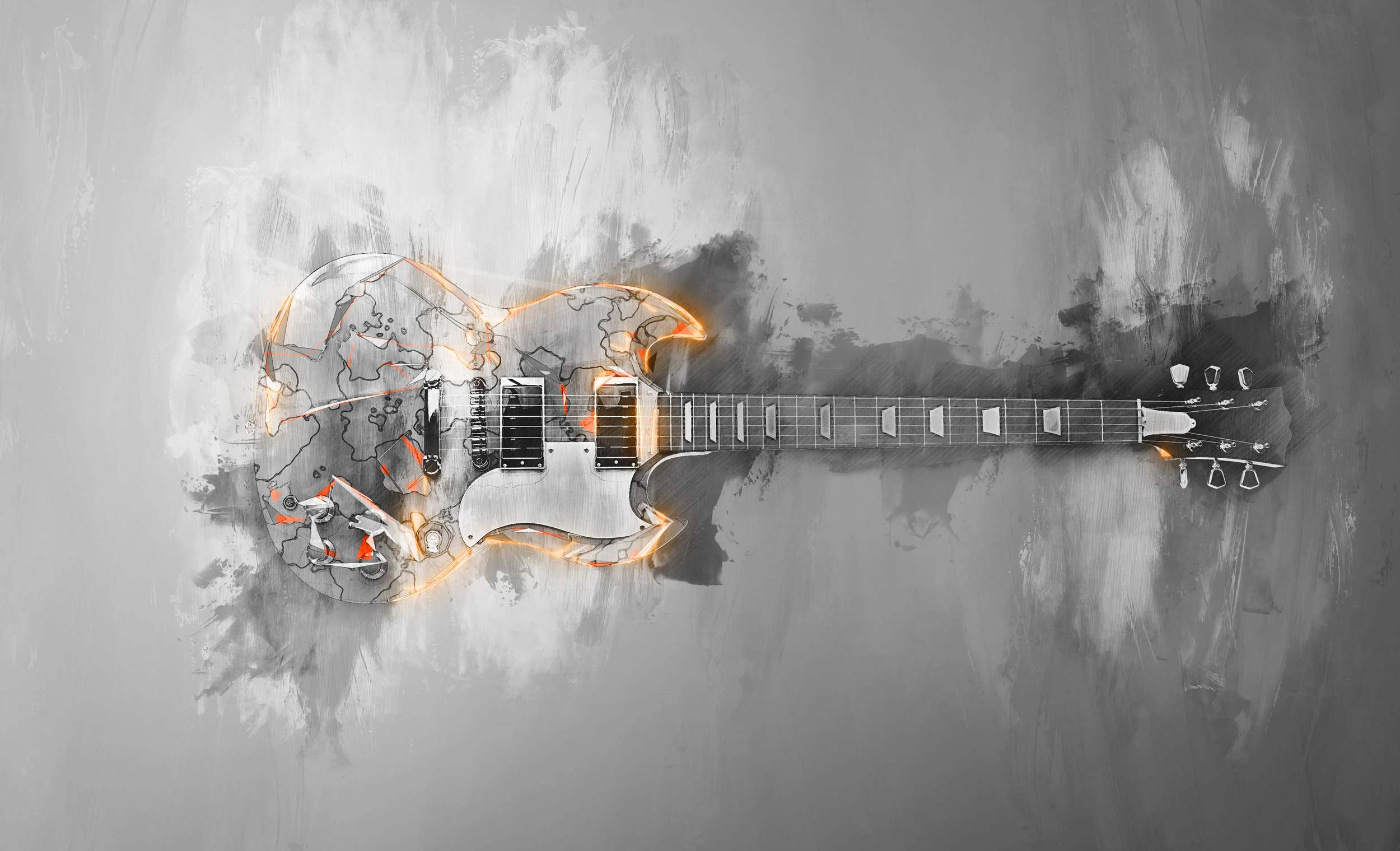 Papier peint guitare électrique artistique effet peinture grise et orange
