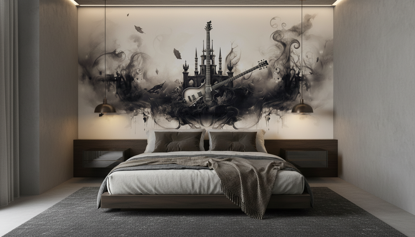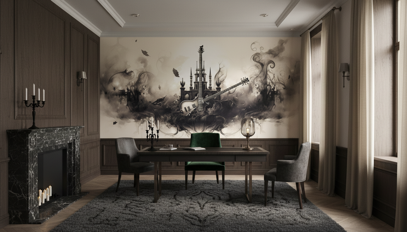 L’atmosphère qui se dégage de ce papier peint décoratif est à la fois mystérieuse et romantique, évoquant l’univers des concerts intimistes dans des lieux chargés d’histoire. Il transforme instantanément votre espace en un refuge artistique où règne une ambiance rock gothique raffinée, parfaite pour les âmes créatives et les passionnés de musique alternative.