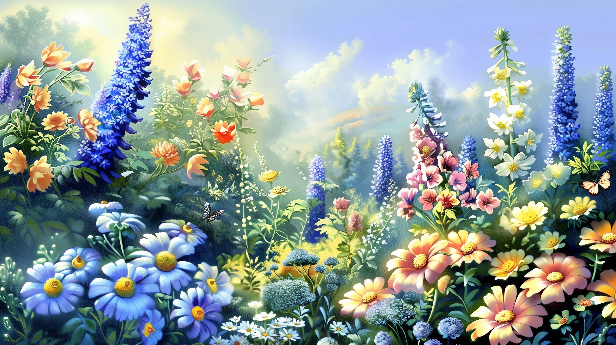 Papier Peint Jardin Enchanteur aux Fleurs Colorées et Papillons
