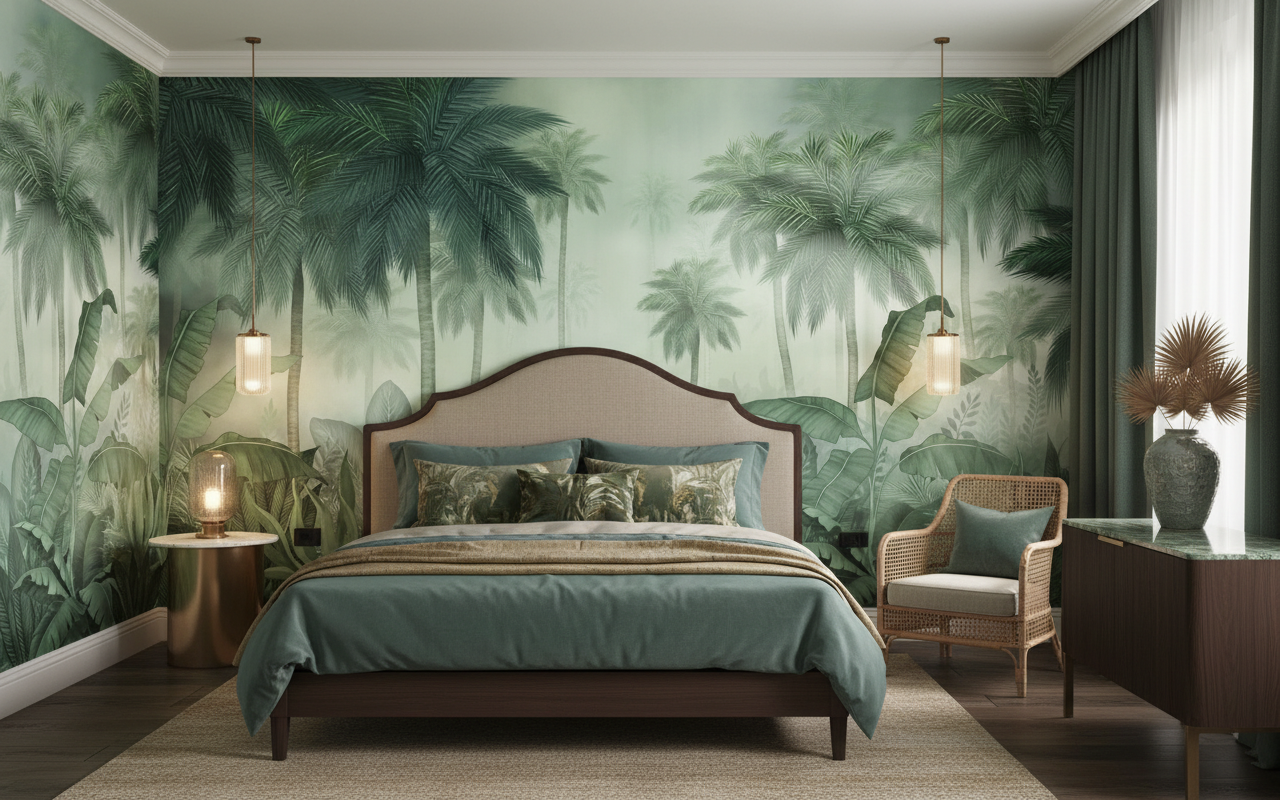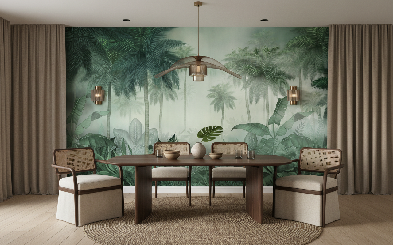 Cette fresque jungle premium s’intègre parfaitement dans les intérieurs botaniques, les décorations biophiliques ou les ambiances slow living. Son style artistique intemporel en fait un choix idéal pour créer un mur d’accent végétal sophistiqué, transformant votre espace en véritable sanctuaire naturel urbain.