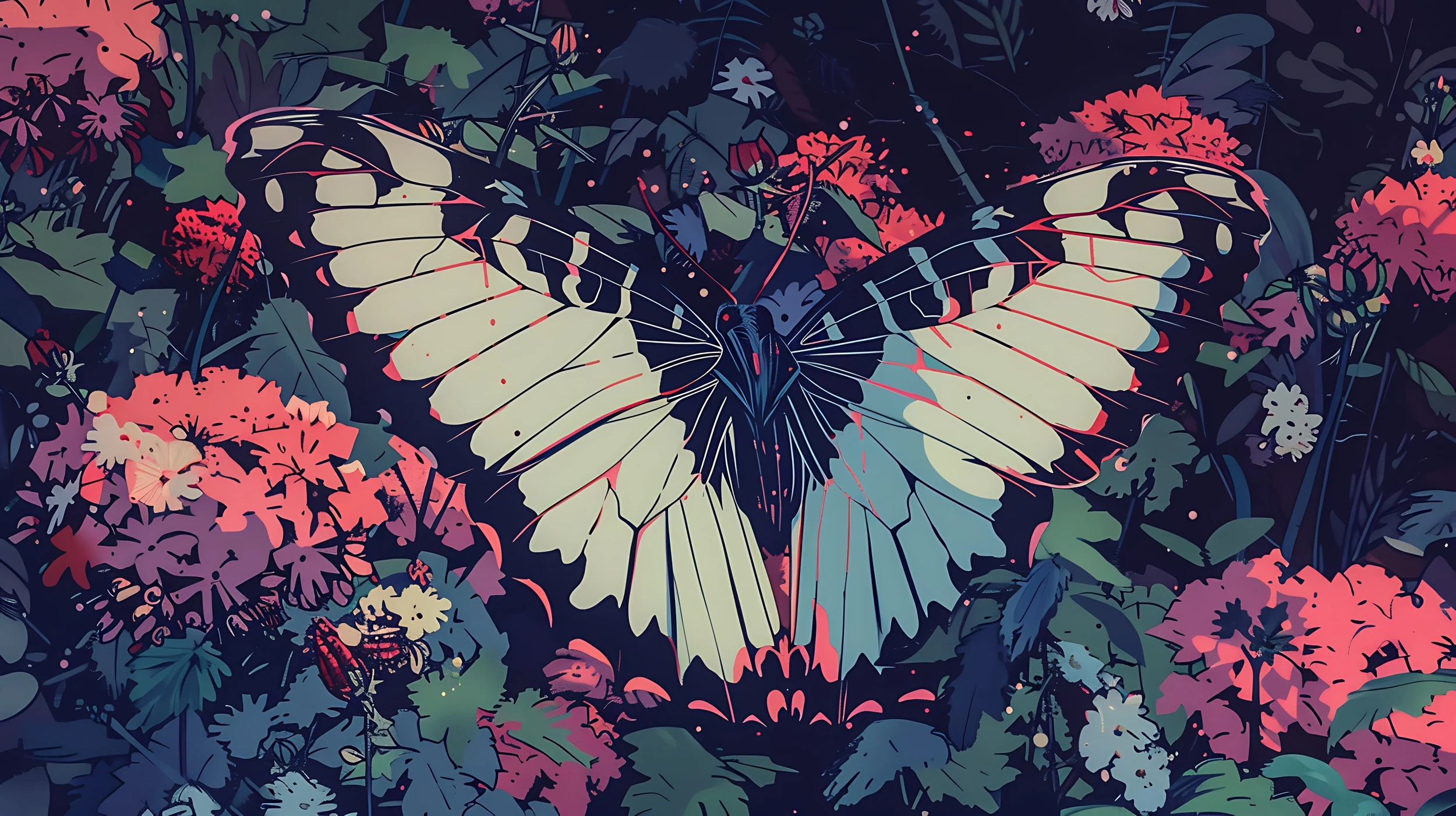 Ce papier peint tropical dévoile un spectacle d’une beauté saisissante : un majestueux papillon aux ailes déployées trône au cœur d’une végétation luxuriante, tel un joyau naturel posé sur un écrin de verdure. Ses ailes délicates, ornées de motifs géométriques subtils dans des tons crème et noir, contrastent harmonieusement avec la richesse chromatique de son environnement. La technique artistique, mêlant illustration naturaliste et stylisation contemporaine, transforme cette scène botanique en véritable œuvre d’art murale.