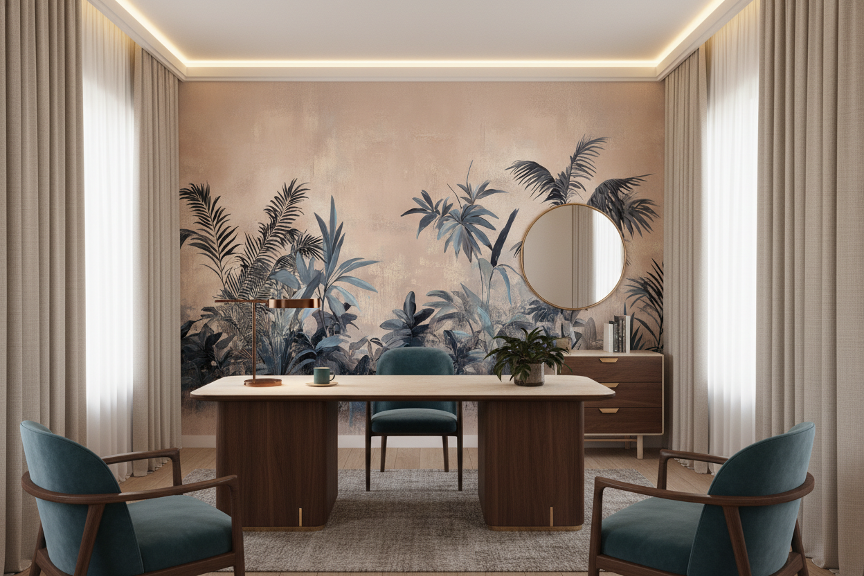 Ce revêtement mural artistique s’inscrit parfaitement dans les tendances déco actuelles, mêlant style tropical moderne et esthétique vintage botanique. Il convient autant à un bureau zen qu’à une salle à manger sophistiquée, apportant partout sa touche d’exotisme raffiné et de poésie naturelle.