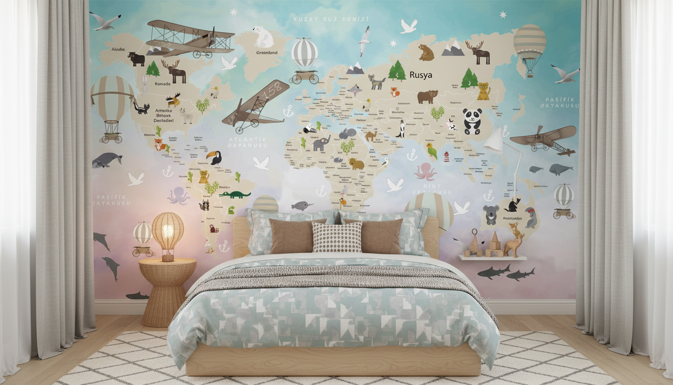 L’atmosphère qui se dégage de ce papier peint éducatif est à la fois apaisante et stimulante. Il crée un environnement propice à la rêverie et à l’apprentissage, transformant n’importe quelle pièce en véritable invitation au voyage. Cette ambiance géographique raffinée évoque les grands explorateurs d’antan tout en conservant une douceur contemporaine parfaitement adaptée aux intérieurs modernes.