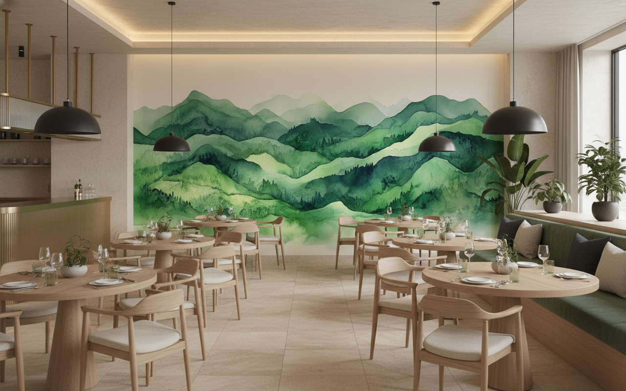 Ce papier peint montagne aquarelle s’harmonise parfaitement avec une décoration épurée privilégiant les matières naturelles authentiques. Les tons neutres comme le beige, le blanc cassé ou le gris perle subliment cette palette végétale, tandis que quelques touches de cuivre brossé ou de laiton mat ajoutent une note de chaleur sophistiquée.