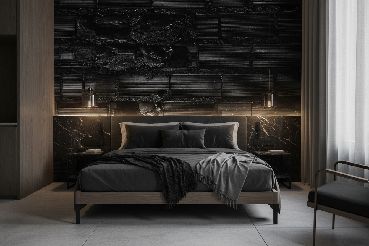 Ce revêtement mural effet matière trouve sa place idéale dans un salon contemporain où il sublimera un mur d’accent derrière un canapé en cuir vintage ou une bibliothèque industrielle. Dans une chambre parentale, il créera une tête de lit spectaculaire, particulièrement mis en valeur par un éclairage LED indirect. Les bureaux et espaces de travail bénéficieront de son caractère inspirant, tandis qu’un couloir se métamorphosera en galerie d’art architectural. Associez-le à des matières nobles comme le bois brut, l’acier patiné et le cuir vieilli pour créer un ensemble harmonieux. Des touches de couleur chaleureuses – terracotta, ocre ou vert sauge – viendront réchauffer cette base neutre sophistiquée.