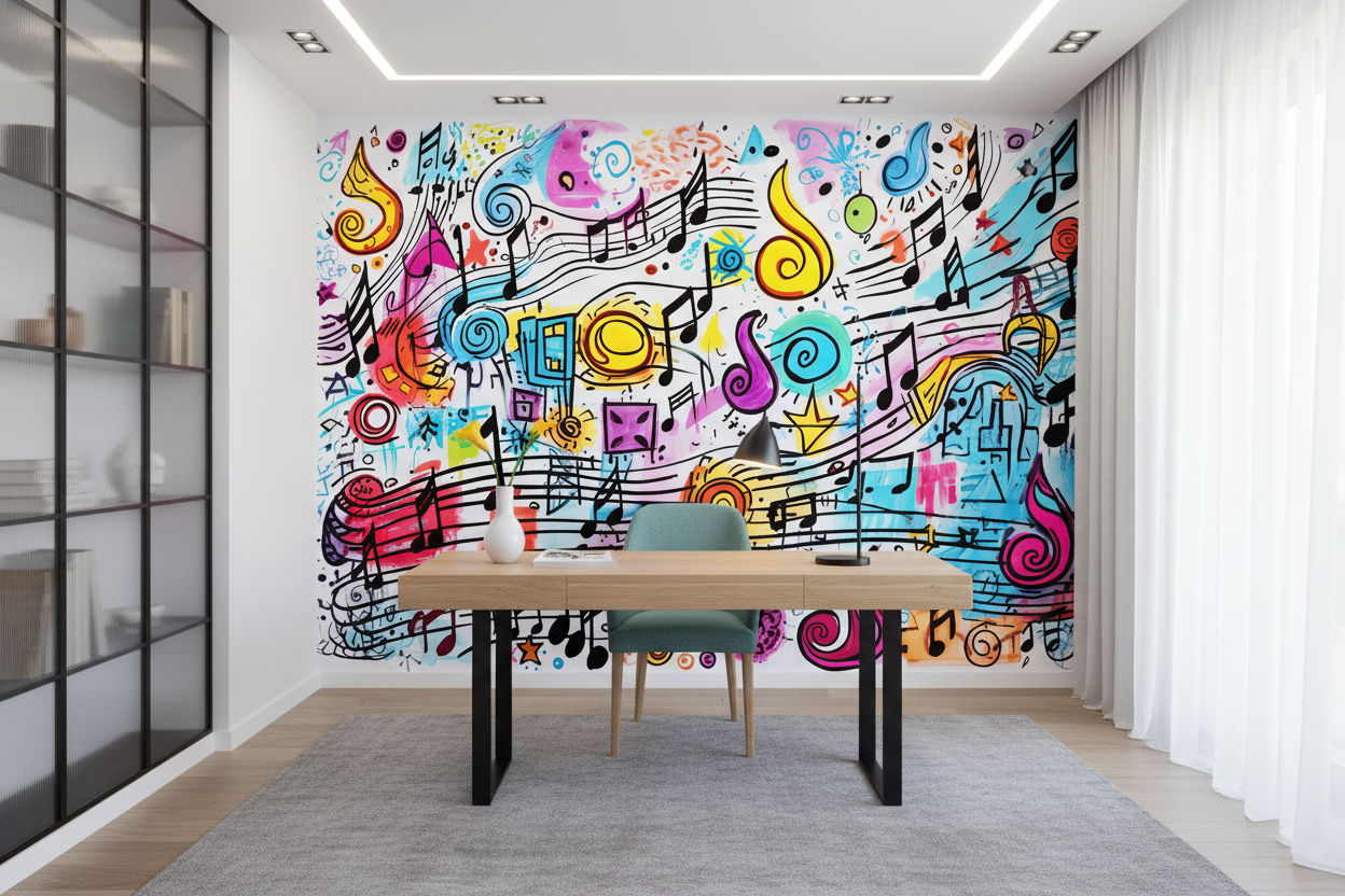 Laissez-vous porter par une symphonie visuelle où chaque note musicale danse dans un tourbillon de couleurs éclatantes, transformant votre intérieur en une partition vivante et électrisante.