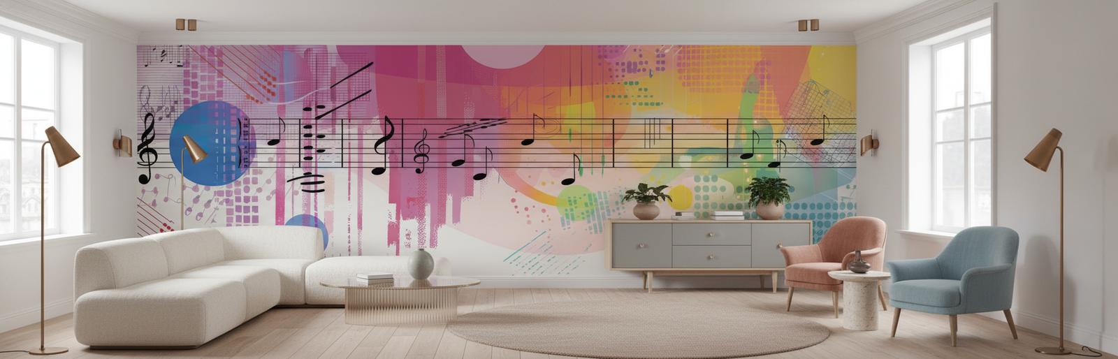 Papier Peint Musical Abstrait – Symphonie de Couleurs et Notes