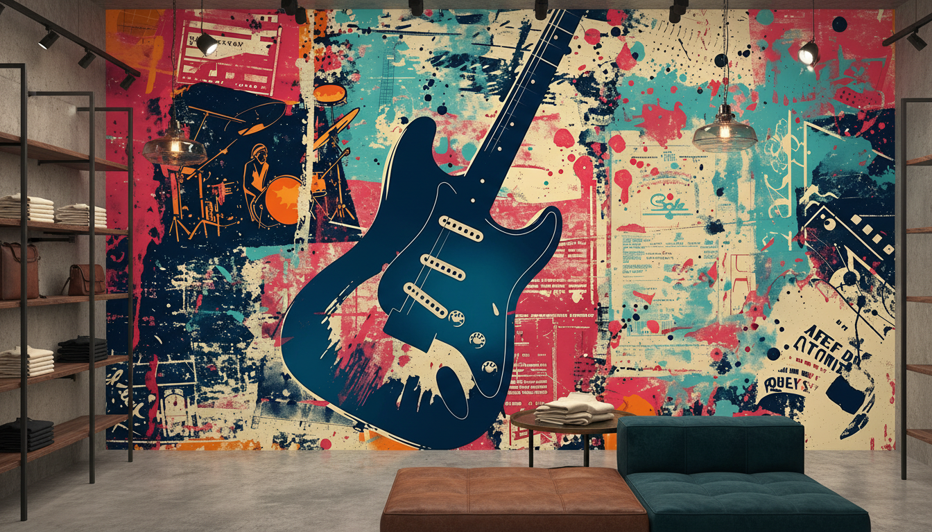 Papier Peint Musical Vintage – Composition Rock Artistique