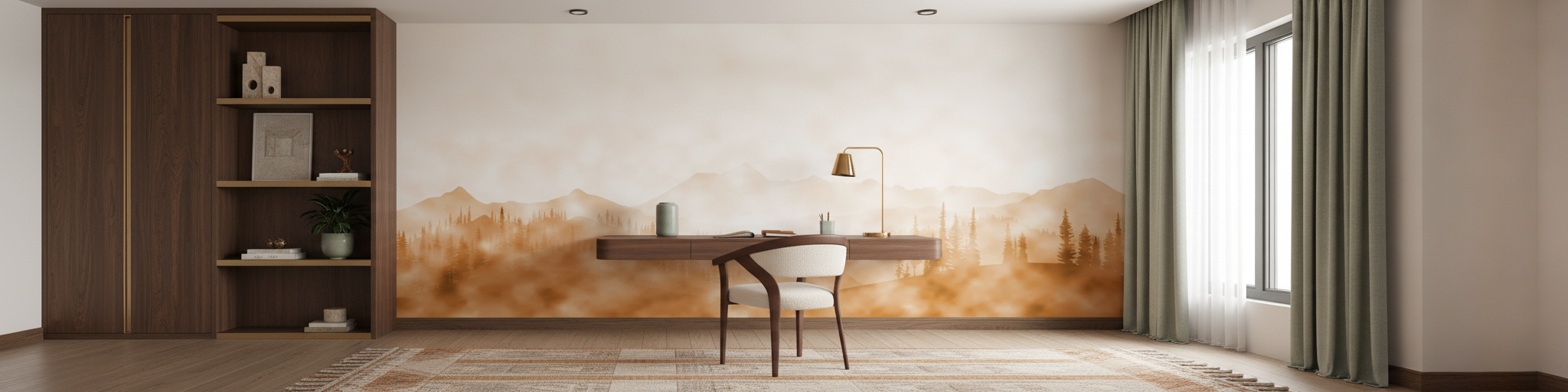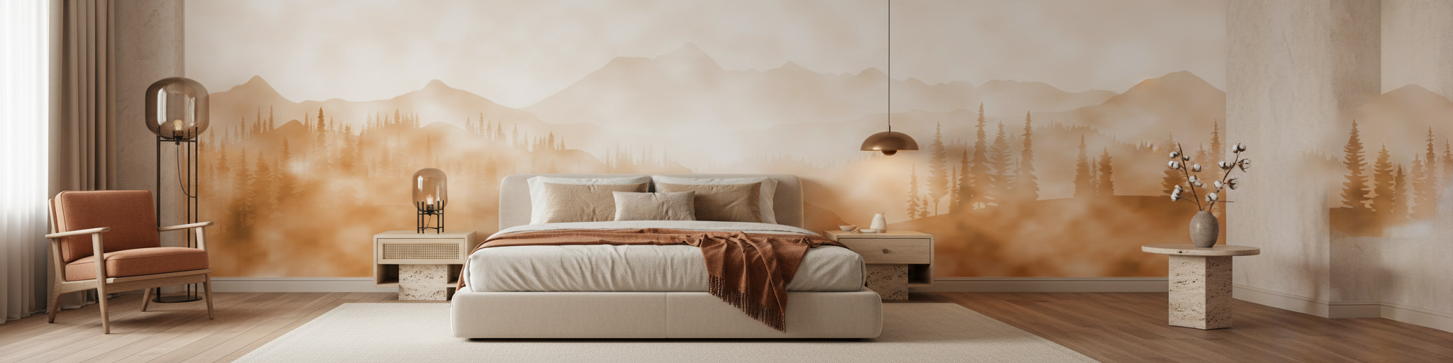 Ce papier peint panoramique trouve sa place idéale dans une chambre parentale, où il créera une atmosphère propice au repos et à la relaxation. Dans un salon contemporain, il s’imposera comme un véritable tableau géant, apportant caractère et personnalité à l’espace. Pour un bureau ou un espace de travail, cette vue apaisante favorisera la concentration tout en offrant une échappée visuelle bienfaisante. Associez-le à du mobilier en bois naturel, des textiles en lin écru ou beige, et des accessoires en laiton brossé pour créer un ensemble harmonieux. Les tons neutres comme le blanc cassé, le taupe ou le gris perle se marieront parfaitement avec cette palette dorée.