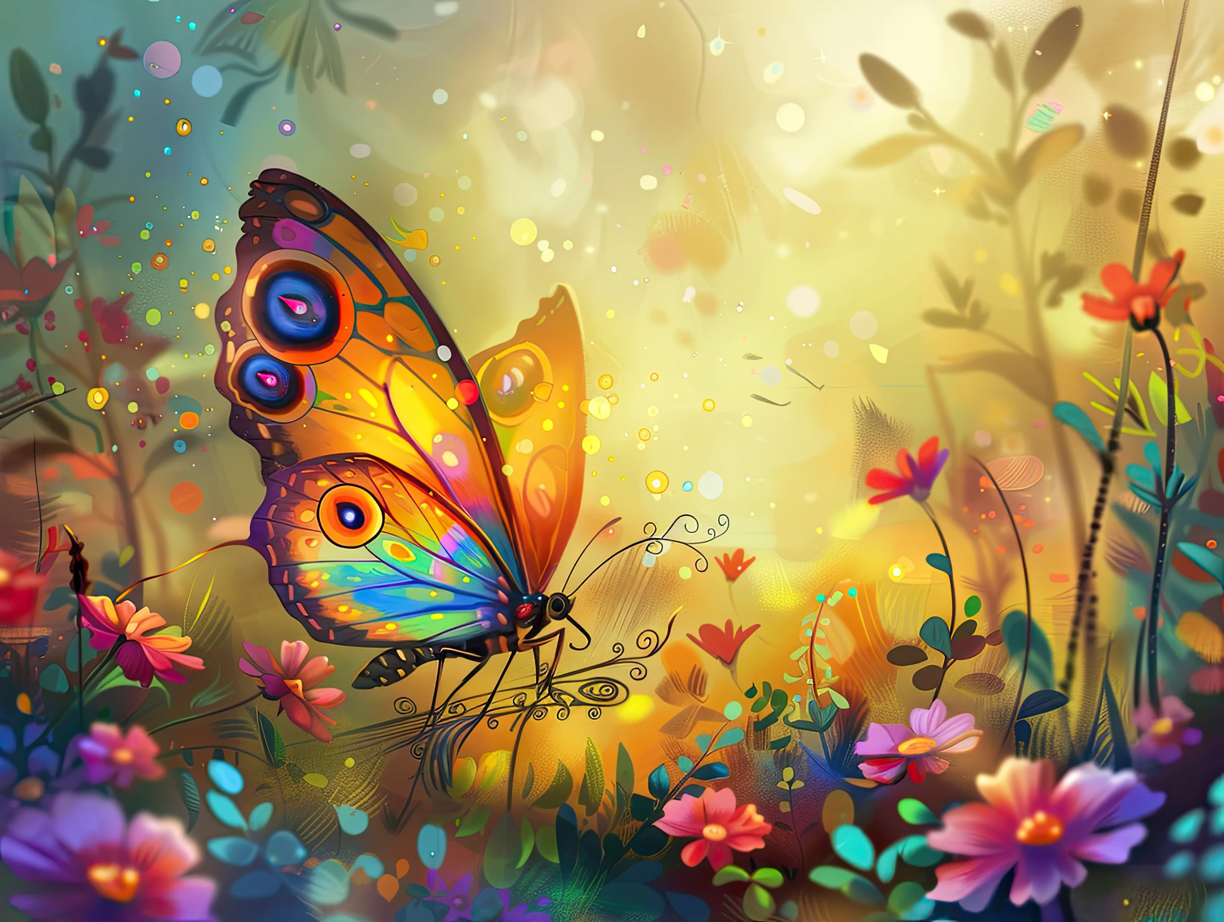 Laissez-vous envoûter par cette symphonie de couleurs où un papillon majestueux déploie ses ailes chatoyantes dans un jardin d’éternelle beauté, transformant votre intérieur en un sanctuaire de poésie vivante.